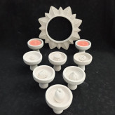 اندازه ظرف : ارتفاع 4 سانت ، قطر پایه 2 سانت ، قطر بیرونی بالا 5 سانت ، قطر داخلی بالا 4 سانت
