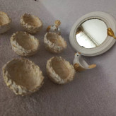هفت سین لونه پرنده ، سفره هفت سین مدل لانه پرنده ، ست هفتسین ، هفت سین سفید طلایی