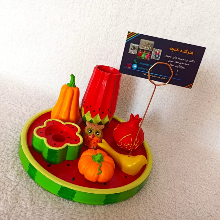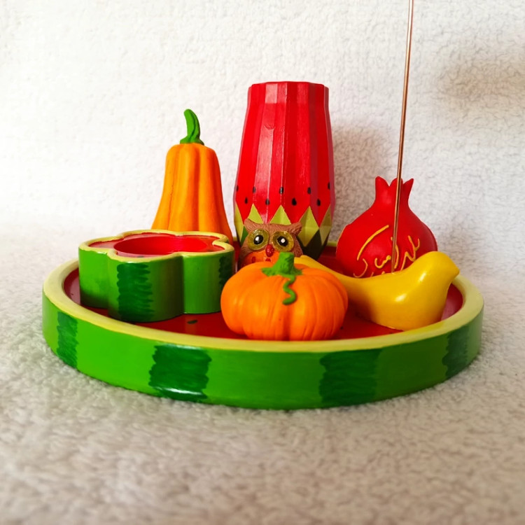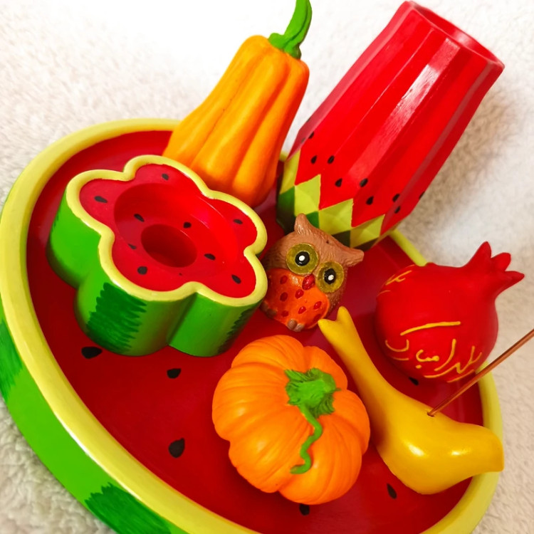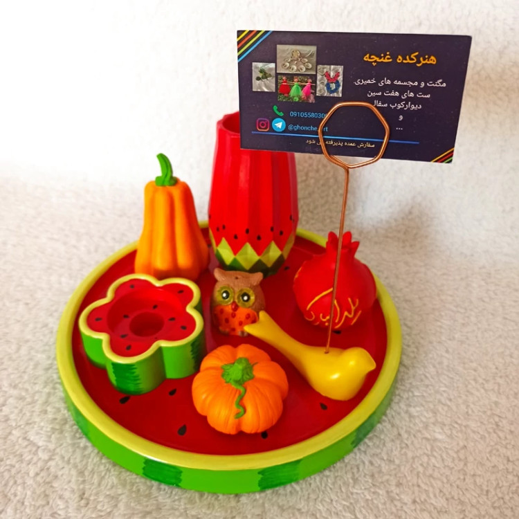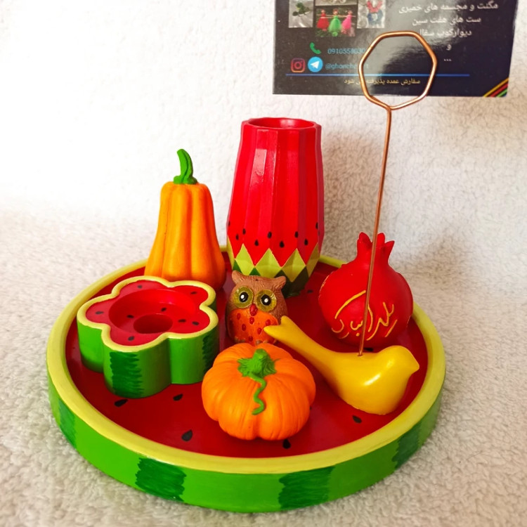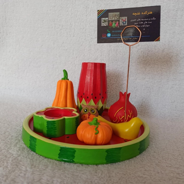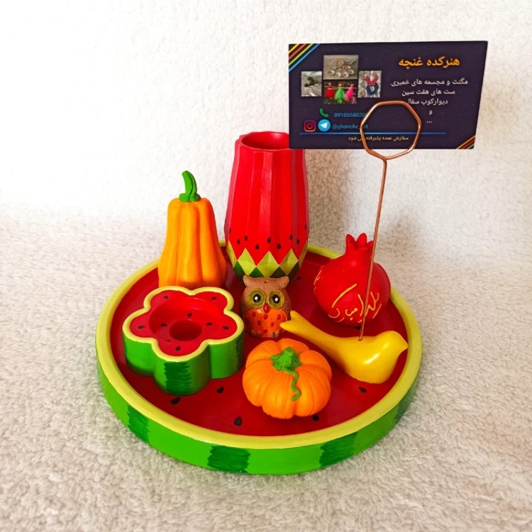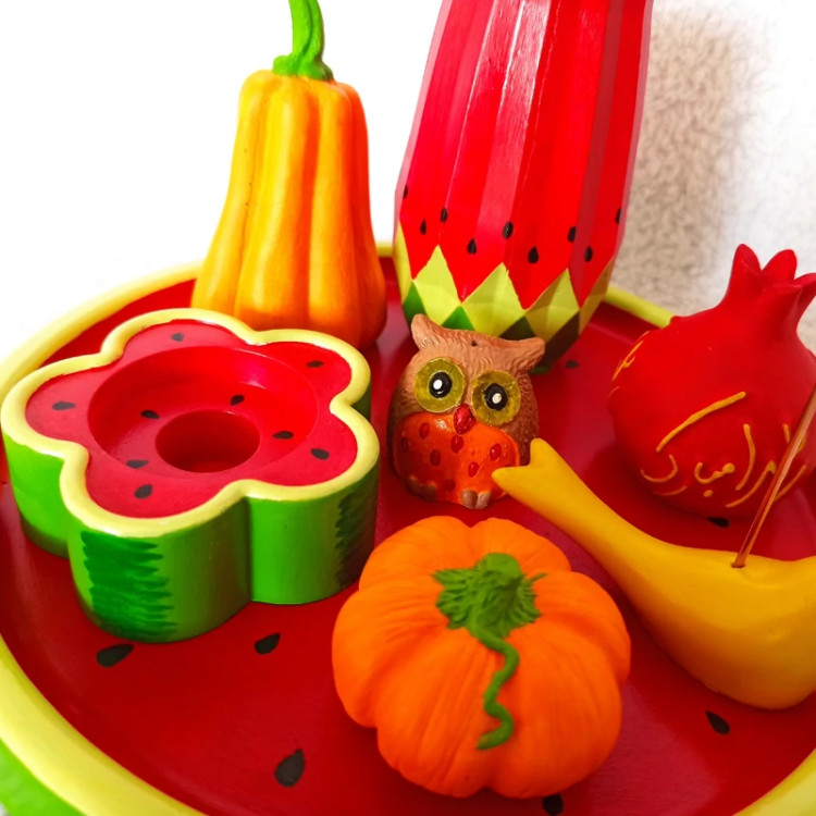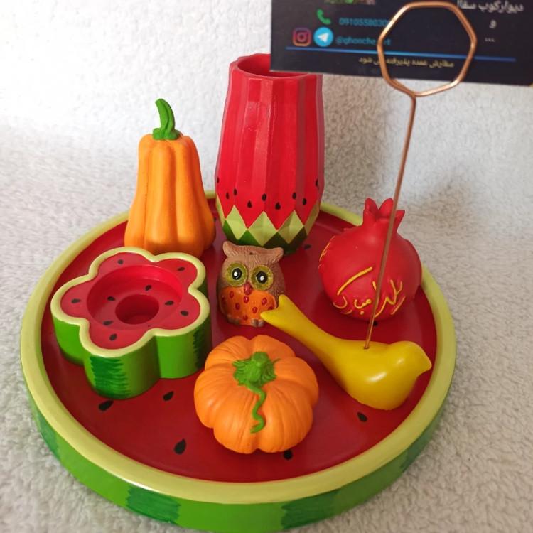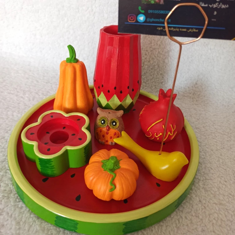 سینی دایره ای یلدایی ، سینی اکسسوری یلدا ، سینی دکوراتیو طرح هندونه یلدا ، سینی دکوری