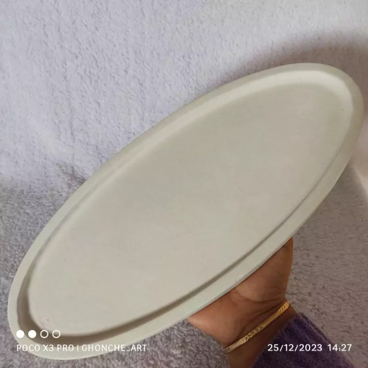 بیس خام سینی بیضی نوک تیز بزرگ جنس سنگ مصنوعی ، سینی بیضی سنگی ، سینی بتنی ، سینی سنگی بیضی خام
