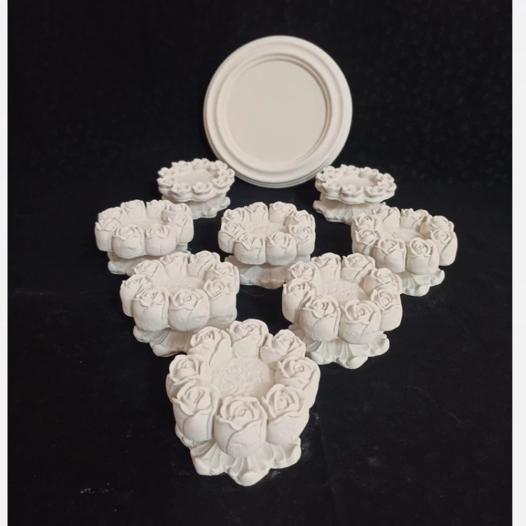 سرویس هفت سین خام ظرف دور گل رز ضخیم پایه دار ، ست هفت سین سنگی ، بیس خام هفت سین پایه دار گلدار ، سفره هفت سین دور گل