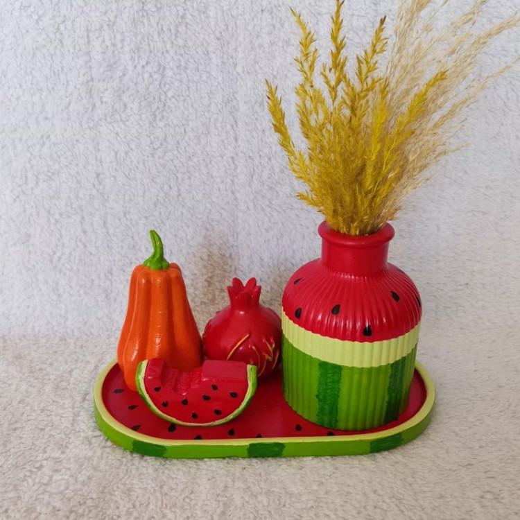 ست اکسسوری یلدایی ، دکوری سینی بیضی یلدا ، سینی دکوراتیو یلدا ، سینی اکسسوری ، سینی یلدایی دکوری ،