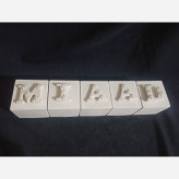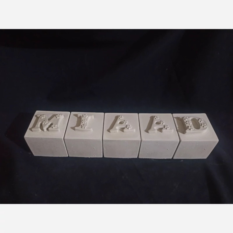 استند مکعبی اسم میعاد رنگ شده جنس سنگ مصنوعی ، مکعب سنگی اندازه اضلاع حدودا 5.8 سانت ، استند حروف کودک طرح مکعبی رنگی