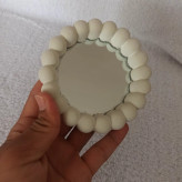 آینه مرواریدی قطر 11.5 سانت جنس سنگ مصنوعی ،اینه گومبولی ، ظرف آینه ای توپی ، جا جواهری ، دکور عکاسی ، آیینه هفت سین
