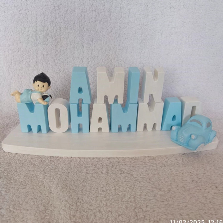 حروف اسم محمد امین فونت ساده رنگ آمیزی شده با طرح دلخواه مشتری ، جنس سنگ مصنوعی ، اندازه هر حرف 5 در 2 سانت به همراه کفی