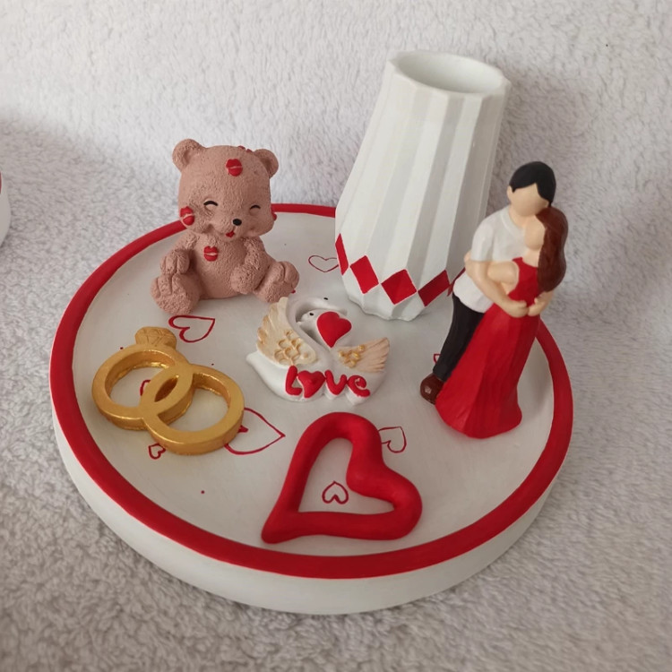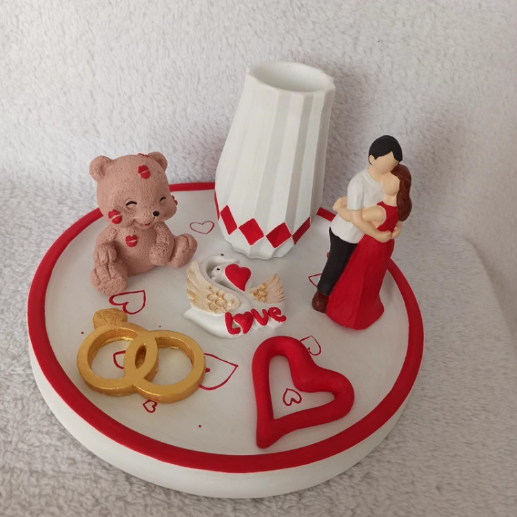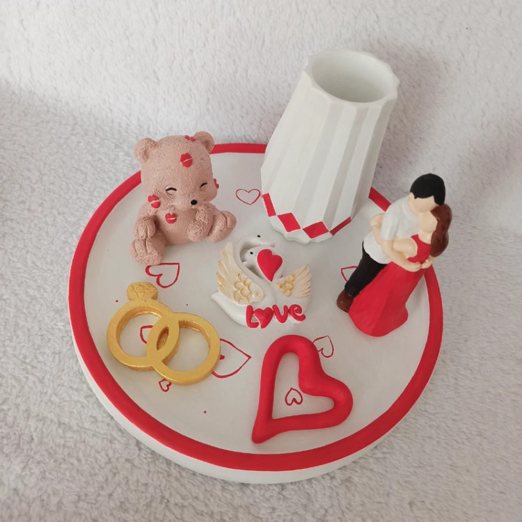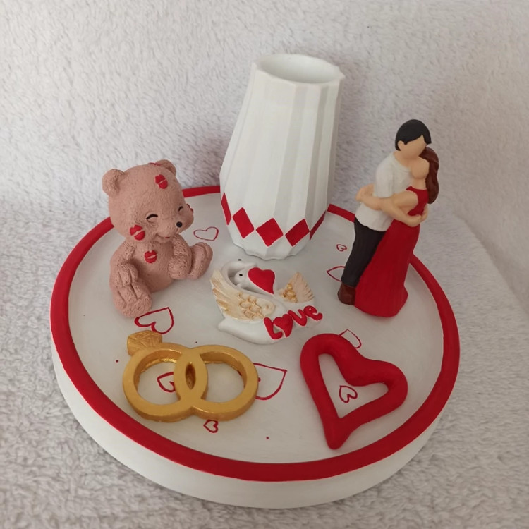 سینی دکوراتیو ولنتاینی رنگی جنس سنگ مصنوعی ، سینی دکوری ولنی ، میکس ولنتاین ، هدیه ولنتاین ، سینی عشق ، خرس ولنتاین