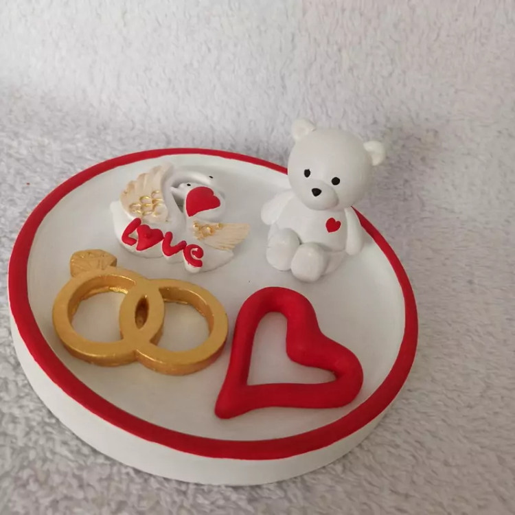 سینی دکوراتیو رنگی جنس سنگ مصنوعی ، سینی دکوری ، سینی میکس هدیه روز عشق ، سینی دکوری هدیه ، گیفت خرس ، گیفت دکوری