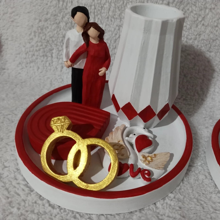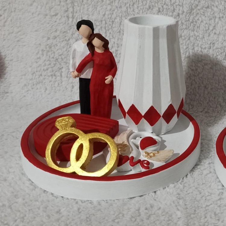 سینی دکوراتیو رنگی جنس سنگ مصنوعی،سینی دکوری ، سینی میکس هدیه روز عشق ، سینی دکوری خرس ، سینی هدیه دکوری