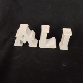 استند اسم علی به صورت خام با فونت رومی ، استند انگلیسی حروف ALI فونت رومی بدون رنگ ، جنس سنگ مصنوعی