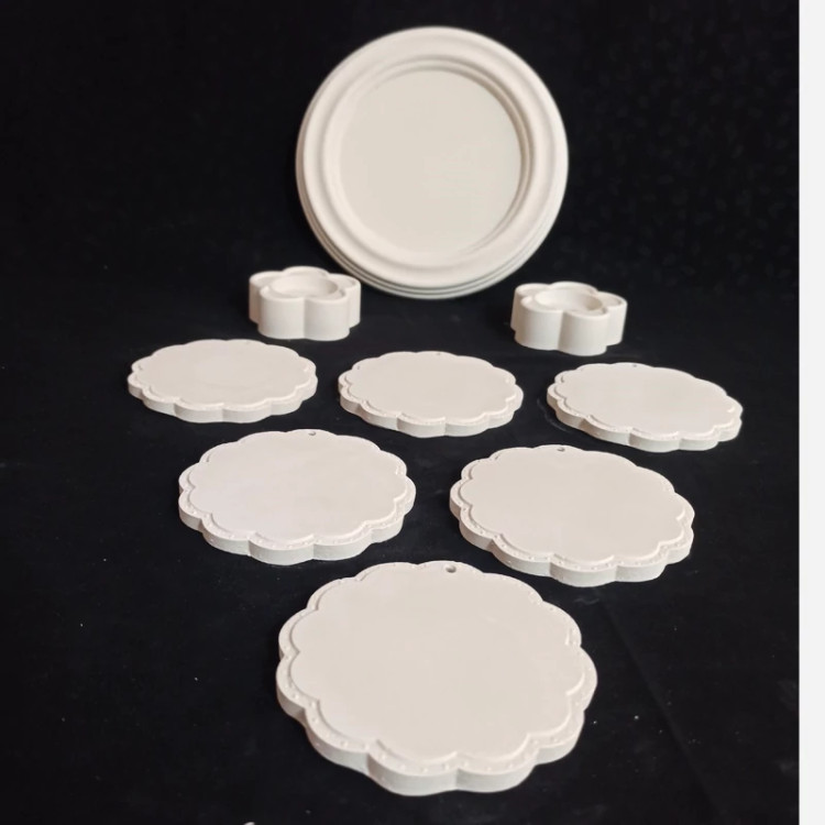سرویس هفت سین خام ظرف دایره ای تخت ، ست هفت سین سنگی ، بیس خام هفت سین تخت ، سفره هفت سین دایره ای تخت طرح گل