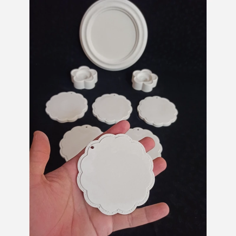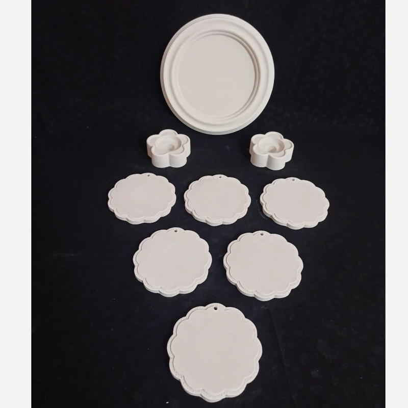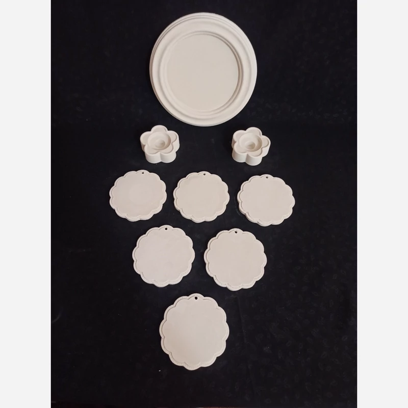 سرویس هفت سین خام ظرف دایره ای تخت ، ست هفت سین سنگی ، بیس خام هفت سین تخت ، سفره هفت سین دایره ای تخت طرح گل