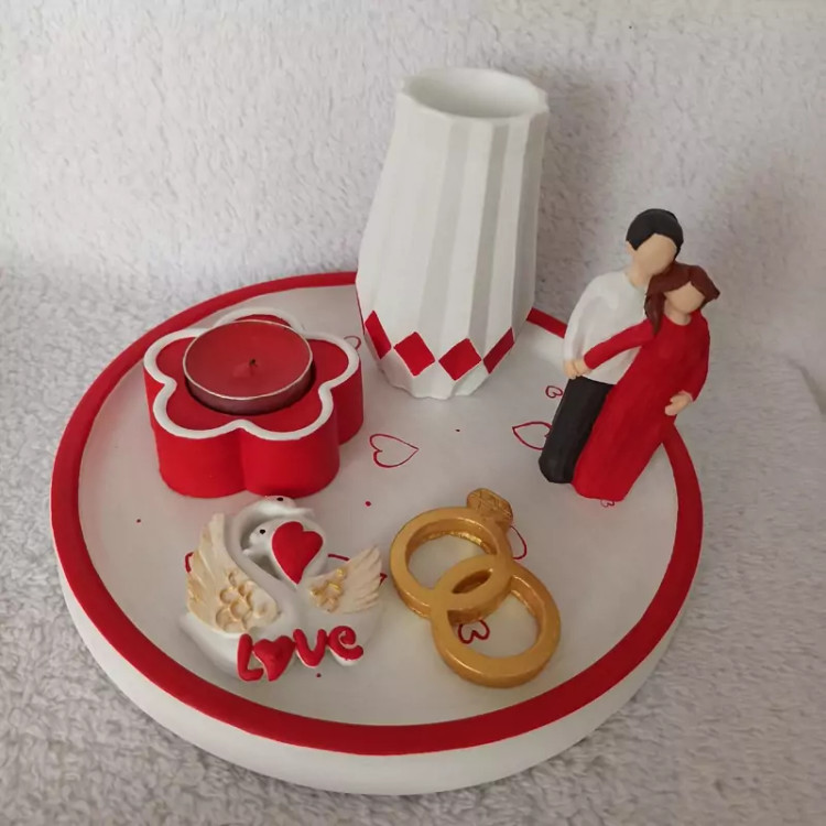 سینی دکوراتیو رنگی جنس سنگ مصنوعی ، سینی دکوری ، سینی میکس هدیه عشق ، باکس عشقولانه، کادو دکوری