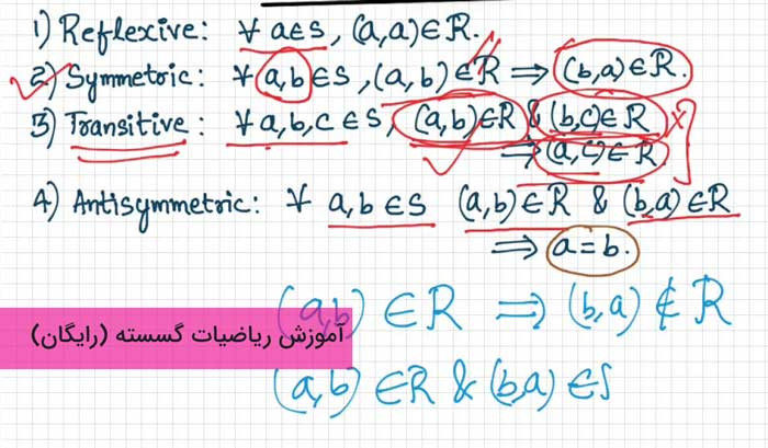 اضیات به دو شاخه تقسیم می شود: ریاضیات پیوسته و ریاضیات گسسته. ریاضیات پیوسته مطالعه اعداد حقیقی است که نتیجه آنها بی نهایت و نامحدود است. در ریاضیات گسسته همانطور که از نامش پیداست مقادیر متمایز مطالعه می شوند و نتیجه آنها نیز محدود و قابل شمارش است. مطالعه ریاضیات گسسته بسیار مفید است زیرا قدرت استدلال و منطق را افزایش می دهد. علاوه بر این جز برنامه درسی دانشجویان نیز می باشد. مباحثی که در ریاضیات گسسته گنجانده شده است، عبارتند از: نظریه مجموعه ها جايگشت و تركيب نظریه گراف منطق دنباله و سری نظریه مجموعه ها مجموعه ها چیزی جز دسته ای از اشیا نیست. به عنوان مثال مجموعه پنج عدد طبیعی اول: {1, 2, 3, 4, 5} در این مبحث درباره مفاهیم و تعاریف مربوط به مجموعه ها صحبت می شود. علاوه بر این با نحوه نمایش یک مجموعه، انواع مجموعه ها، زیر مجموعه ها، نمودارهای ون (Venn) و قوانین جبر مجموعه ها نیز آشنا خواهید شد. بیشتر رشته های ریاضی از مجموعه ها استفاده کرده یا به آنها اشاره می کنند. به حل مسائل مبتنی بر دنباله، احتمال و هندسه کمک می کند. جايگشت و تركيب جايگشت و تركيب انواع راه هايی را نشان می دهند كه به وسيله آنها مي توان اشیا را براي ايجاد مجموعه ها انتخاب كرد. جایگشت را به صورت زیر محاسبه کنیم: nPr = (n!) / (n-r)! ترکیب را به صورت زیر محاسبه کنیم: nCr = n! / r! (n-r)! منطق منطق چیزی است که به عنوان استدلال معتبر می شناسیم. علوم کامپیوتر نیز روی منطق کار می کند و در آن از گیت های منطقی مثل AND، OR و NOT برای حل مسائل استفاده می شود. نظریه گراف نمودار یک ساختار ریاضی است که برای نمایش رابطه بین اشیا استفاده می شود. شامل گره هایی است که توسط یال ها به هم متصل می شوند. گراف ها مطالعه و تجزیه و تحلیل داده ها با حجم زیاد را آسانتر و راحتتر می کنند. دنباله و سری دنباله رشته ای از اعداد در یک ترتیب خاص است در حالی که سری حاصل جمع اعدادی است که به ترتیب مرتب شده اند. مثال از ریاضیات گسسته 1- اگر S و T دو مجموعه باشند به طوری که تعداد عناصر S، T و S ∩ T به ترتیب برابر با 21، 32 و 11 باشد، مجموعه S ∪ T چند عنصر دارد؟ راه حل: n(S) = 21 (تعداد عناصر مجموعه S) n(T) = 32(تعداد عناصر مجموعه T) n(S∩T) = 11(تعداد عناصر مجموعه S∩T) n(S ∪ T) = n(S) + n(T) – n(S∩T) (تعداد عناصر مجموعه S ∪ T) = 21+ 32+ 11 = 42 بنابراین مجموعه S ∪ T شامل 42 عنصر است. 2- چند عدد سه رقمی را می توان با استفاده از رقم های 1 تا 9 بدون تکرار رقم تشکیل داد؟ راه حل: رقم های موجود= 9 مکان های موجود= 3 nPr = (n!) / (n-r)! جایگشت = 9! / (9-3)! =9*8*7*6! / 6! =504 504 عدد می توان تشکیل داد. 3- یک مرد بازپرداخت وام خود را با 100دلار برای اولین قسط شروع می کند.. اگر هر ماه مقدار قسط او 5 دلار افزایش یابد. چه مبلغی را در قسط 30ام باید بپردازد؟ راه حل: 100, 105, 110, …. اولین جمله = 100 (فاصله بین هر دو جمله) d = 5 (جمله 30 ام)A30 = a + (30 – 1)d = 100+ (29) (5) = 245. بنابراین مبلغ قابل پرداخت در قسط 30ام برابر با 245 دلار است. آموزشهای ریاضیات گسسته و سپس مفاهیم و اصول مهم هر درسی کار نکرد حتما در بخش نظرات اعلام کنید تا مشکل سریعا رفع شود برای مشاهده بهتر ویدیوها در موبایل، گوشی را افقی نگه دارید. اگر اروری مشاهده کردید بخاطر روشن بودن وی پی ان است. از پیج ارشد کامپیوتر: درس 1 بخش 1 درس 1 بخش 2 درس 2 بخش 1 درس 2 بخش 2 درس 3 بخش 1 درس 3 بخش 2 درس 3 بخش 3 درس 4 – منبع درس 5 – منبع نکته و تست جلسه 1 نکته و تست جلسه 2 حتما دانلود کنید: آموزش صفر تا صد زبان انگلیسی با 32 درس رایگان +جزوه های PDf این اصول و مبانی ریاضیات گسسته یعنی 80 درصد یادگیری