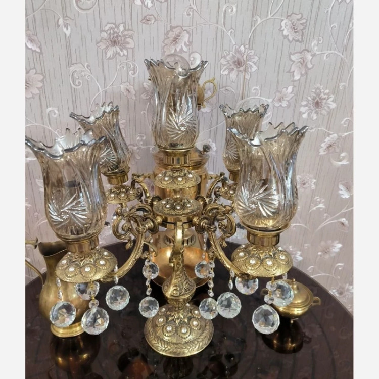 لوستر رومیزی برنزی چلچراغ آباژور سلطنتی برنز