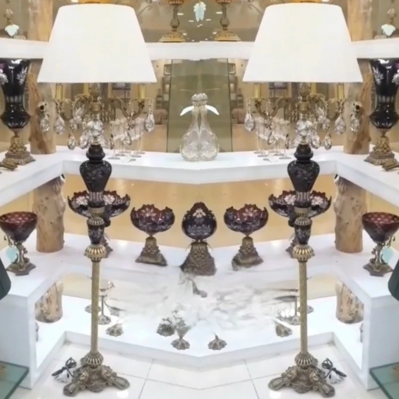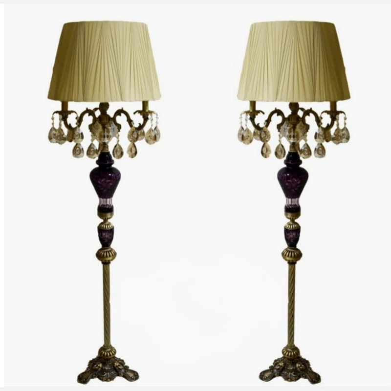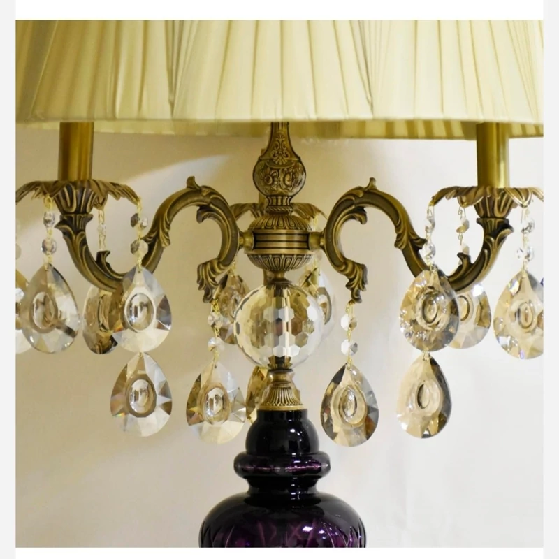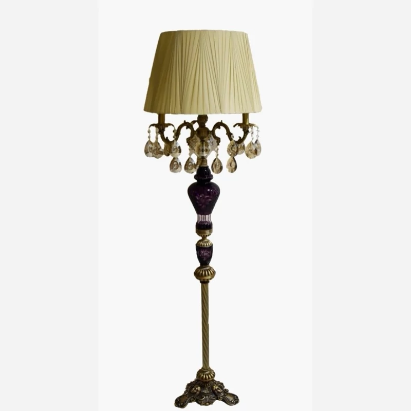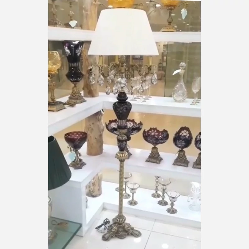 آباژور کنار سالنی ایستاده کریستال تراش دار برنز بنفش شید دار