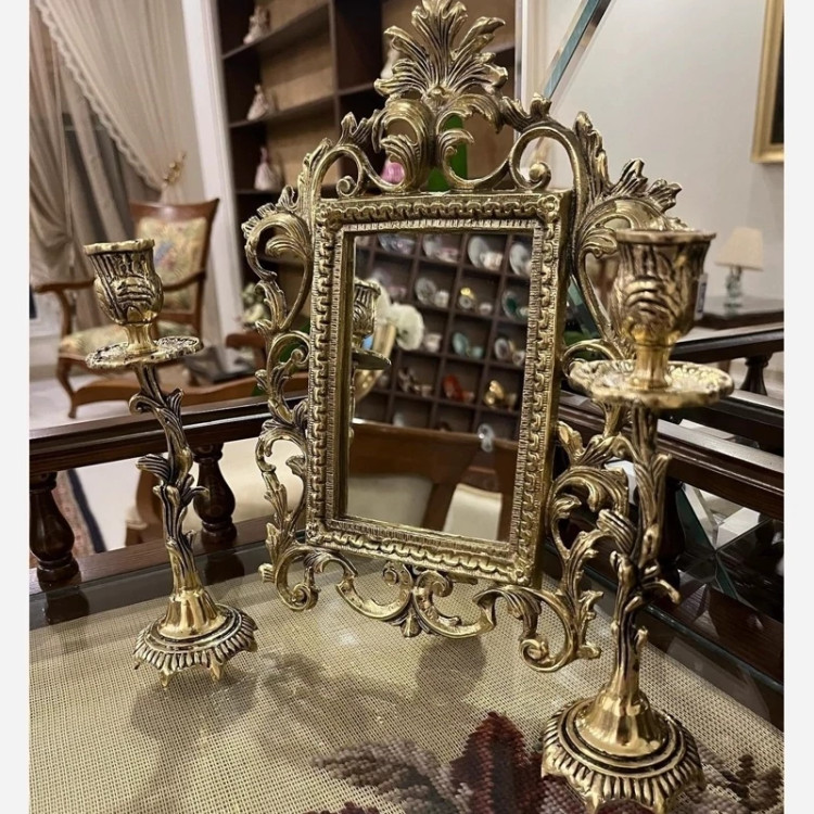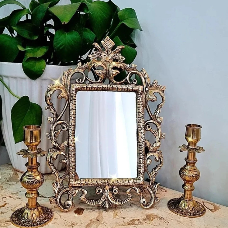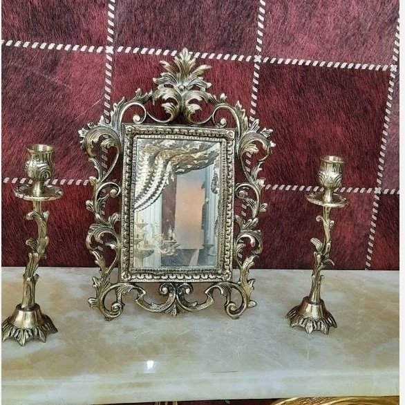 آینه رومیزی و دیواری و قاب عکس چند کاربردی برنز مدل برگی سنگین و قالب اصلی