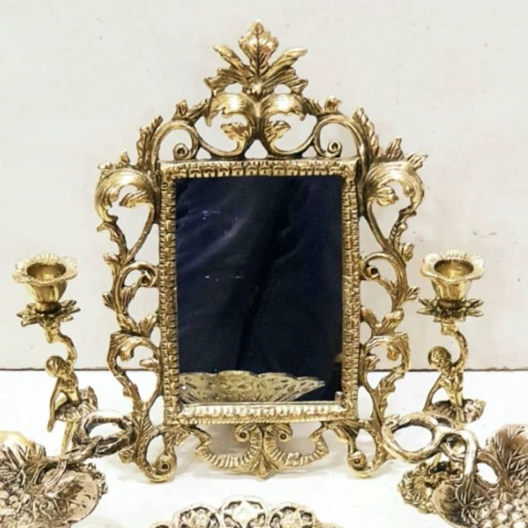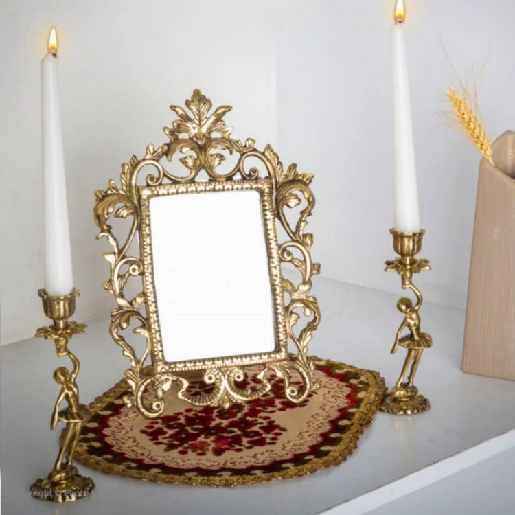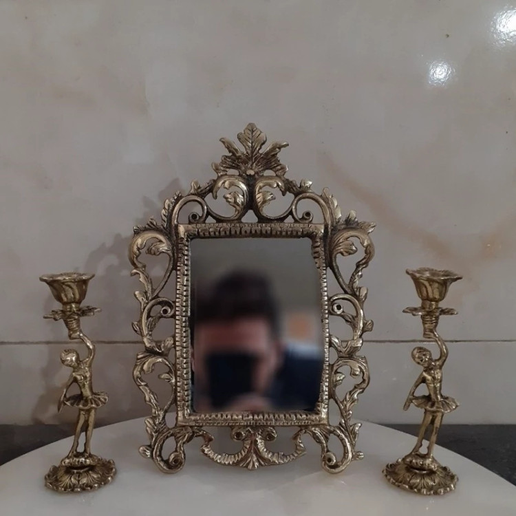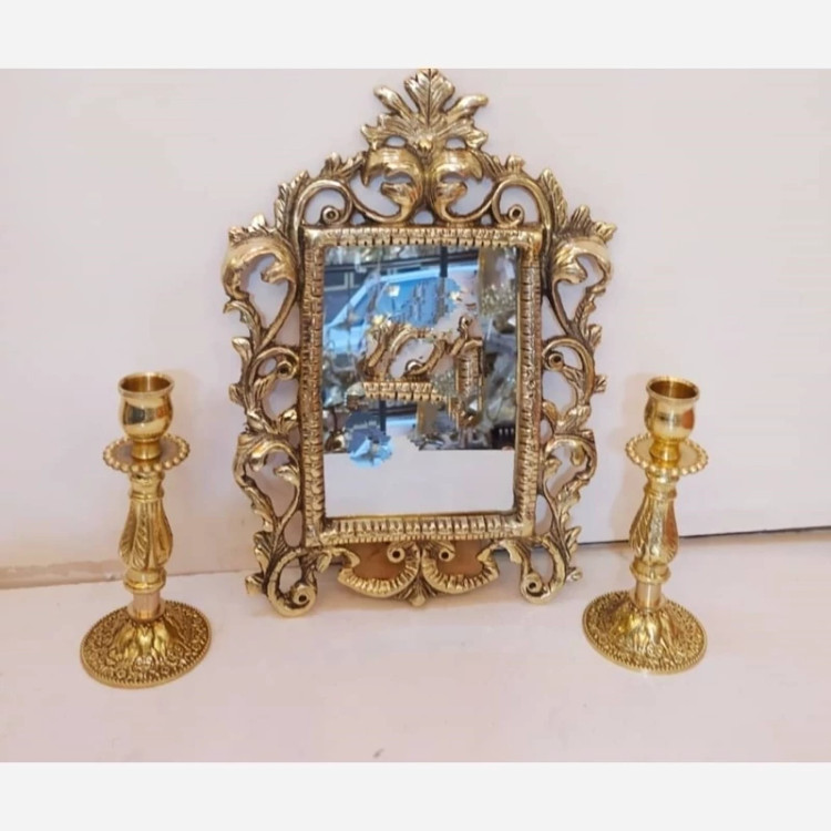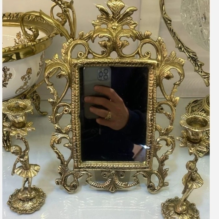 آینه برگی هفت سین برنز قاب عکس رومیزی و دیواری آیینه دستی آنتیک برنز