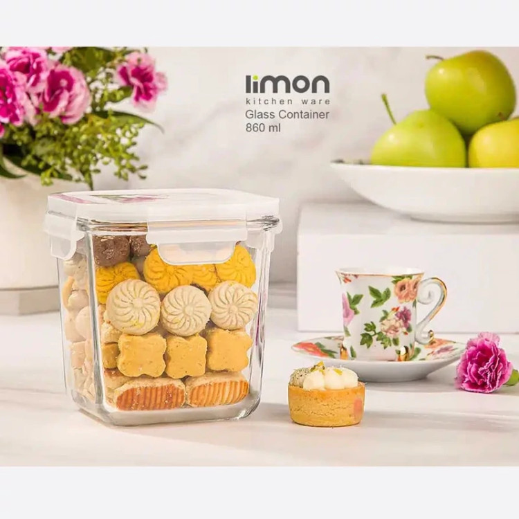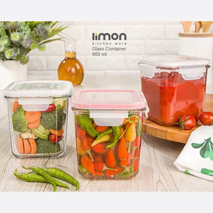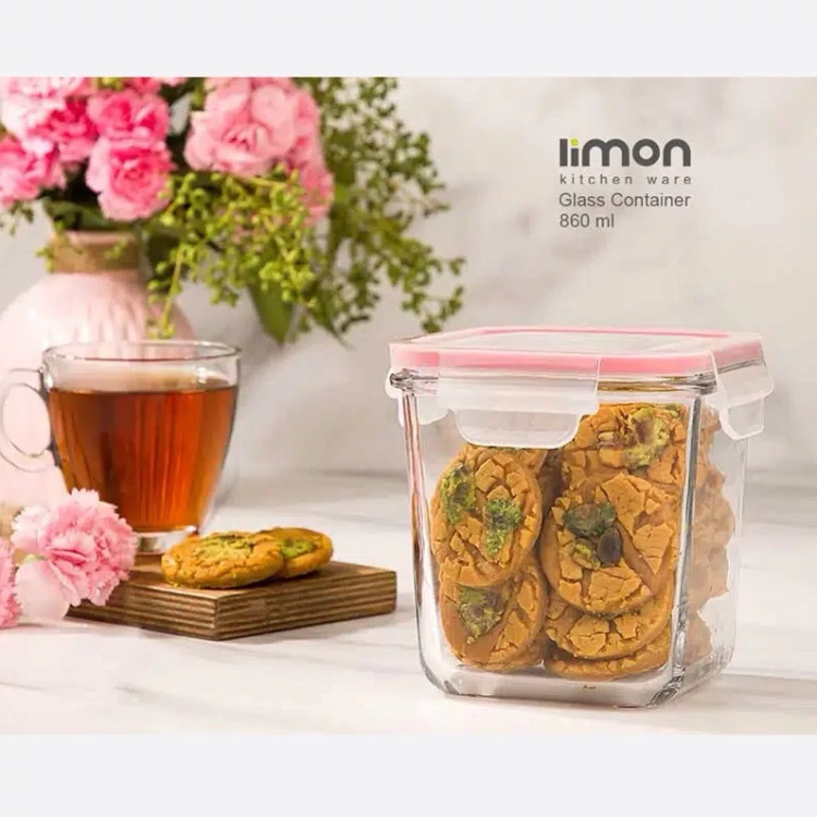 ظرف شیشه ای 860میلی لیتر دربدار لیمون