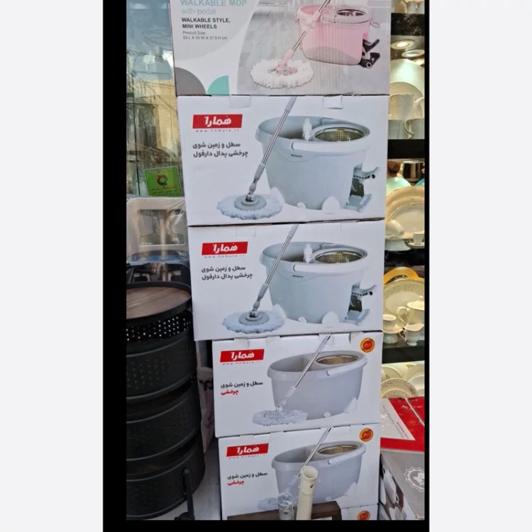 توضیحات خودمونی : زمین شوی سطلی همارا مدل فول بنابر تجربه ما توی بازار از نظر قیمت ، کیفیت ، کارایی و در دسترس بودن قطعات یدکی بهترین و با ارزش خرید ترین نمونه طی سطلی در رنج قیمت متوسط می باشد ، این محصول توسط شرکت همارا که از بهترین شرکت های تولید محصولات پلاستیکی منزل می باشد تولید می شود و امکانات زیادی مانند پدال پایی ، مایع ریز ، خروجی تخلیه آب ، دسته تلسکوپی و عملکرد چهارگانه همزمان فعال می باشد ، طی سطلی همارا