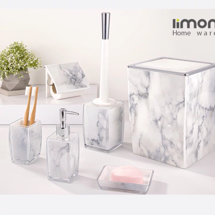 ست سرویس بهداشتی دوجداره کلاسیک طرح ماربل لیمون به صورت 6 پارچه شامل : سطل زباله ، فرچه توالت ، جا مایع ، جا مسواک ، جا صابون، آویز دستمال توالت تولید شده است. ست سرویس بهداشتی دوجداره کلاسیک طرح ماربل لیمون محصول کاربردی است که می توانید در محیط سرویس بهداشتی از آن استفاده نمایید. این ست شیک از ترکیب پلاستیک و اکرولیک ساخت شده است و از کیفیت بالایی برخوردار است و با توجه با کیفیت ساخت بسیار خوبی که دارد با قیمت مناسبی به بازار عرضه می شود. شما می توانید از این محصول زیبا به عنوان ست جهیزیه نیز استفاده نمایید.