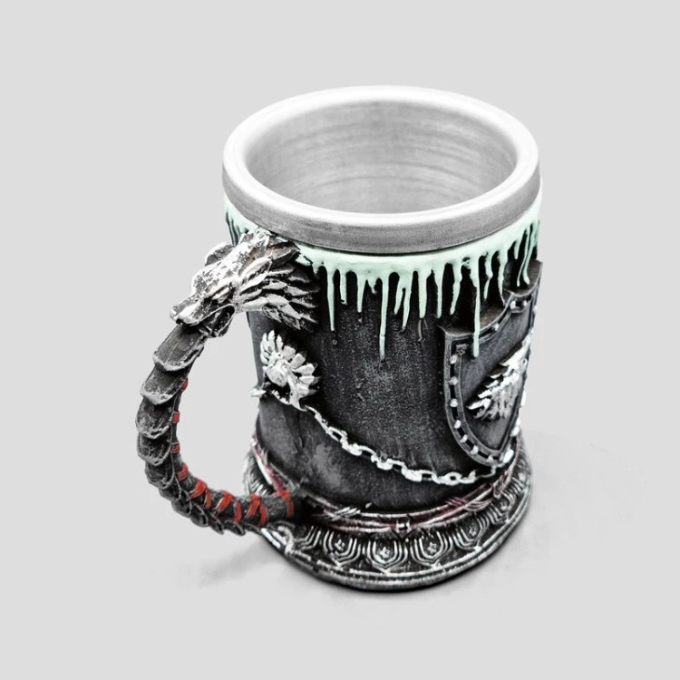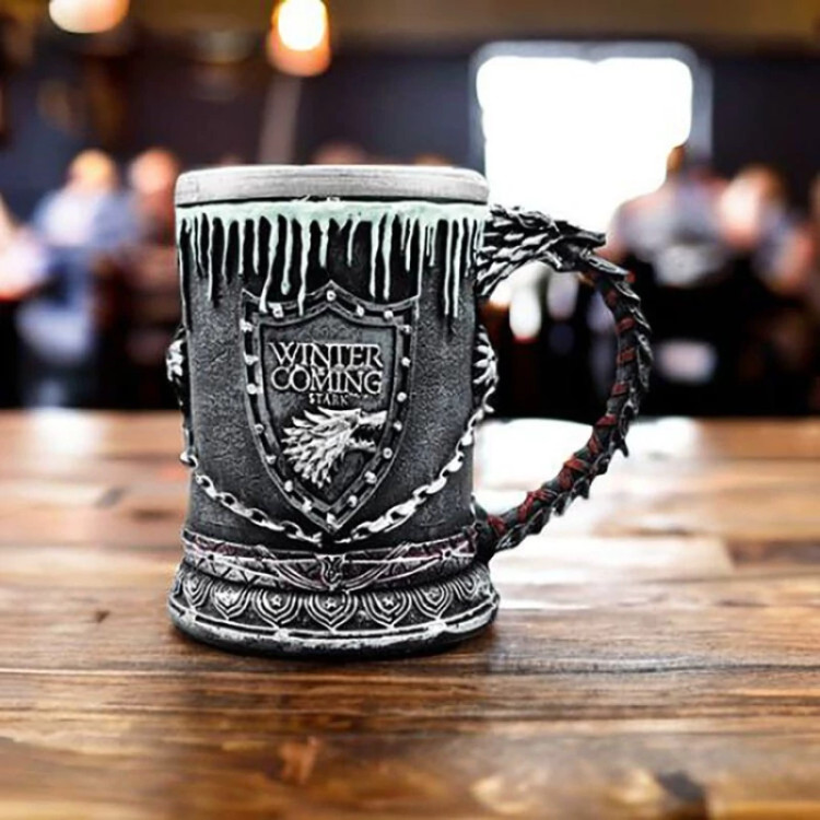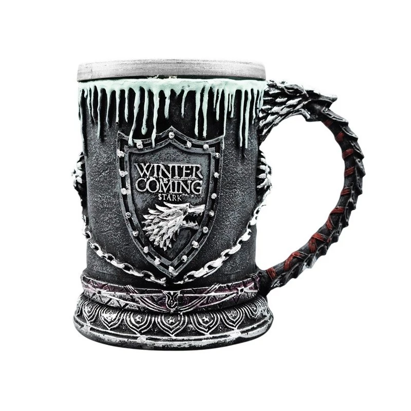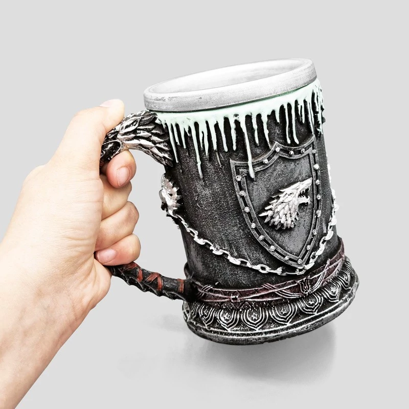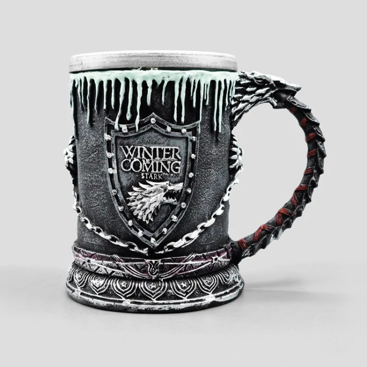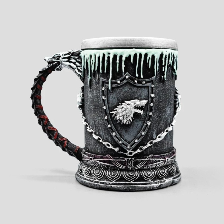 ماگ می تواند از جنس های مختلفی از قبیل شیشه، استیل، سرامیک و … باشد. ماگ مدل بازی تاج و تخت Game of Thrones کد Vnz-700d1، یک ماگ خاص و زیبا با قیمت مناسب می باشد. ارتفاع این ماگ ، ۱۳.۵ سانتیمتر است. بدنه ماگ Game of Thrones رزین پلی استر با کیفیت بالا بوده و لایه داخلی آن آلومینیوم میباشد. طرح اصلی این ماگ فانتزی، تصویر گرگ استارک در هر طرف ماگ است و شعار winter is coming که مربوط به سریال تاج و تخت در یک طرف آن دیده میشود. ماگ گیم آو ترونز تولید ایران بوده و وزن بالا و کیفیت رنگ آمیزی فوقالعادهای دارد.