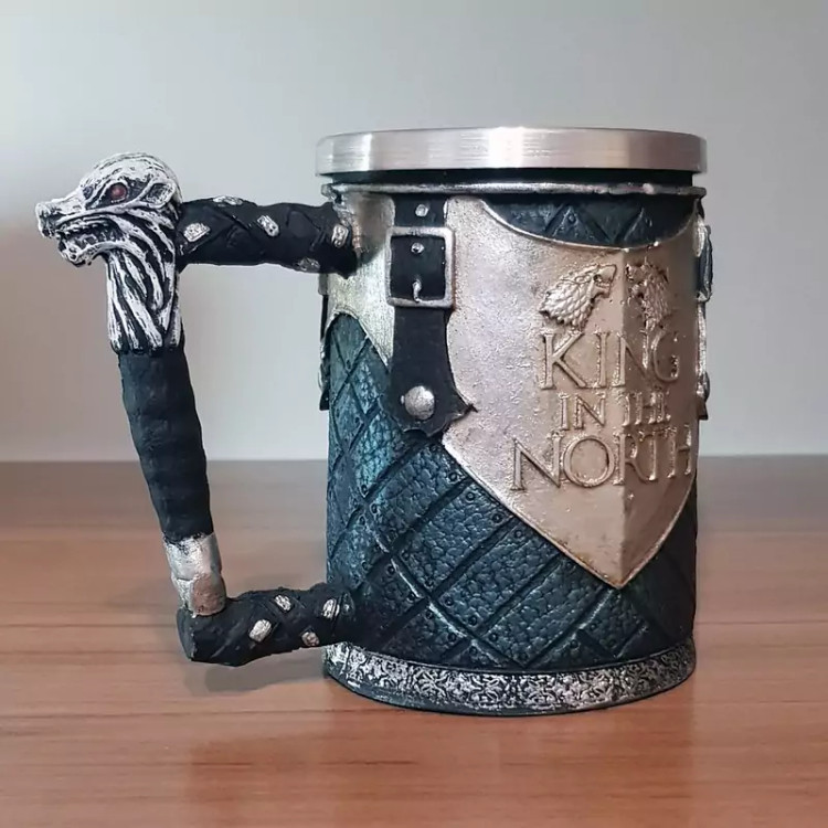 ماگ سریال بازی تاج و تخت مدل King iin the North از دوجداره (جداره داخلی استیل ضدزنگ + جداره بیرونی پلی استر رزین) تولید شده است که علاوه بر حفظ دما، قابل استفاده به عنوان لیوان و ماگ نوشیدنی و همچنین قابل استفاده به عنوان جامدادی و جااکسسوری و یا دکوری است و یکی از بهترین گزینهها برای هدیه به عزیزانتان میباشد.