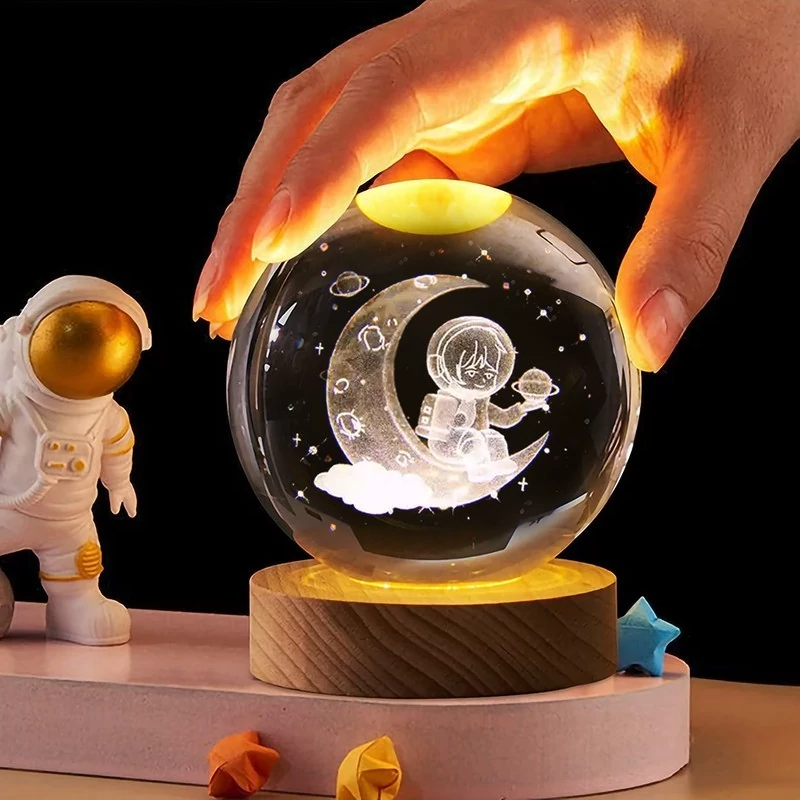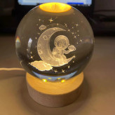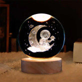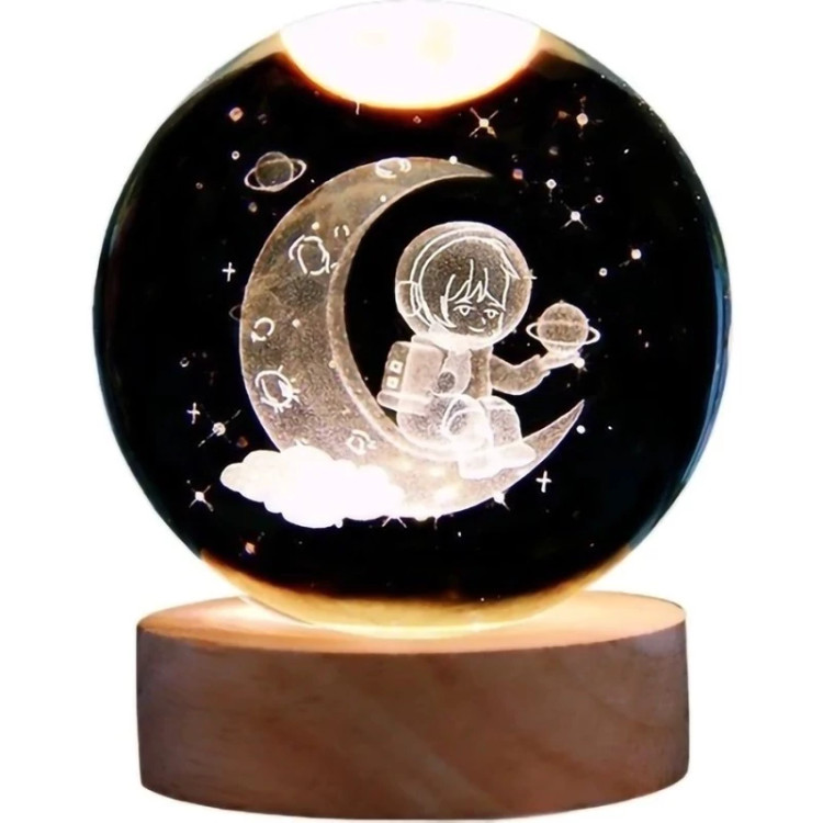 این چراغ خواب کریستالی به صورت سه بعدی و در طرح فضانورد روی ماه تولید شده که باعث جذابیت بیشتر اتاق خواب شما می شود. جنس این گوی شیشه ای از کریستال فشرده می باشد و همچنین دارای یک پایه چوبی و کابل برق USB می باشد که امکان اتصال به لپ تاپ، کامپیوتر، پاور بانک و شارژ گوشی را فراهم میسازد. این محصول دکوری منحصر به فرد و شیک و همچنین یک هدیه جذاب و ماندگار برای هر شخصی می تواند باشد
