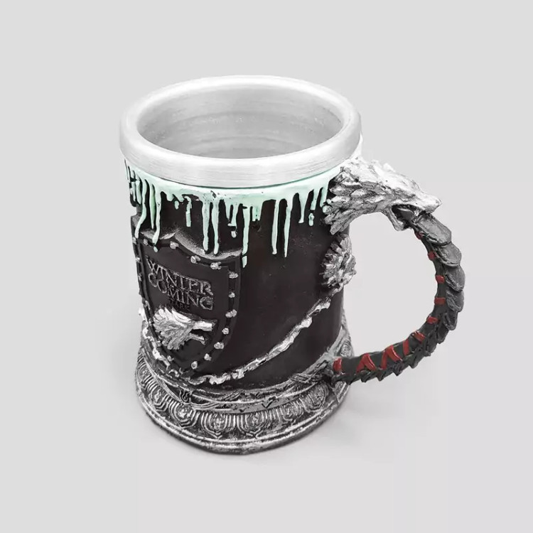 ماگ می تواند از جنس های مختلفی از قبیل شیشه، استیل، سرامیک و … باشد. ماگ مدل بازی تاج و تخت Game of Thrones کد Vnz-700d1، یک ماگ خاص و زیبا با قیمت مناسب می باشد. ارتفاع این ماگ ، 13.5 سانتیمتر است. بدنه ماگ Game of Thrones رزین پلی استر با کیفیت بالا بوده و لایه داخلی آن آلومینیوم میباشد. ماگ گیم آو ترونز تولید ایران بوده و وزن بالا و کیفیت رنگ آمیزی فوقالعادهای دارد.