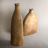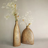 دو گلدان زیبای پلی استری با رنگ طلایی و ارتفاعات مختلف که برای گل های مصنوعی خیلی مناسبه و حتی خالیشم قشنگه