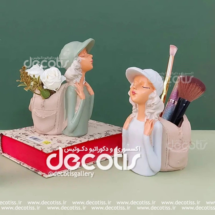 دختر کوله پشتی دار مخصوص جای قلم و براش دکوری شیک زیبایی خاصی به میز ارایش شما میدهد رنگ ثابت و قابلیت شستشو مقاوم در برابر نور