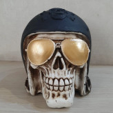 دکوری اسکلت جمجمه انسان با عینک طلایی پلی استری