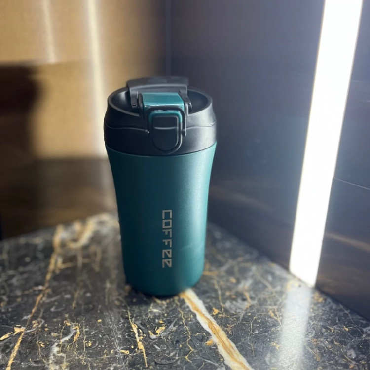 تراول ماگ دوقفله طرح کافی(سبز)