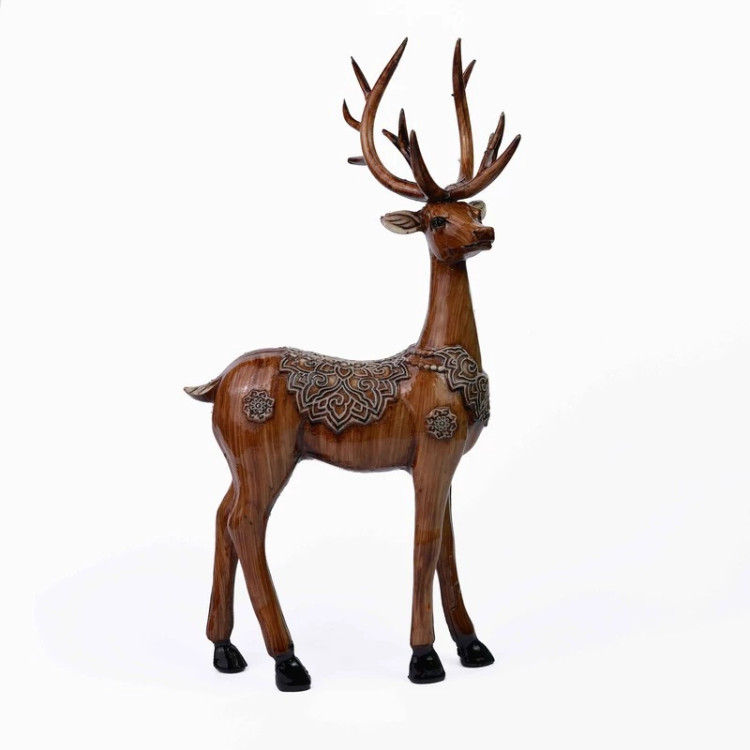 اگر به دنبال یک انتخاب خاص و چشمنواز برای تزئین فضای داخلی منزل یا محل کار خود هستید، این مجسمه گوزن با طراحی کلاسیک و نقوش سنتی، گزینهای ایدهآل خواهد بود. ترکیب رنگ قهوهای گرم با نقشهای ظریف سنتی، جلوهای اصیل و هنری به این اثر بخشیده است. این ست شامل دو مجسمه گوزن (ایستاده و نشسته) است که با جزئیات دقیق طراحی شدهاند و حس آرامش، قدرت و وقار را به فضای شما میبخشند. استفاده از متریال با کیفیت، این محصول را به یک انتخاب مناسب برای دکور زمستانی، عکاسیهای فصلی، یا حتی هدیهای خاص و ماندگار تبدیل کرده است.