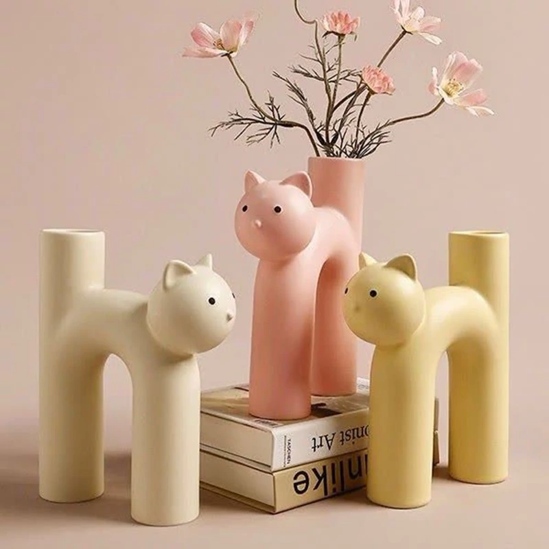 گلدان دکوری پلی استر مدل گربه ای مدرن مینیمال رنگ شده کار دست