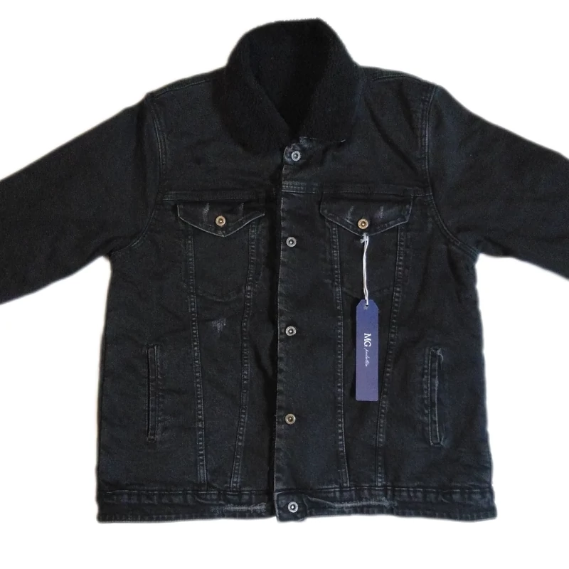 کاپشن مردانه جین زغالی خزدار سایز لارج و ایکس لارج