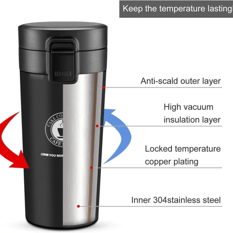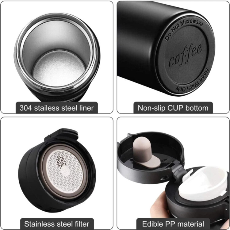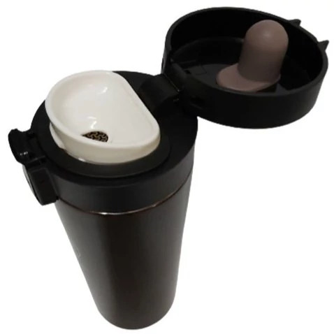 فلاسک مخصوص قهوه و دمنوش دارای محفظه کوچک مخصوص برای خروج آرام مایعات باز شدن خودکار درب با فشار دادن شستی مخصوص