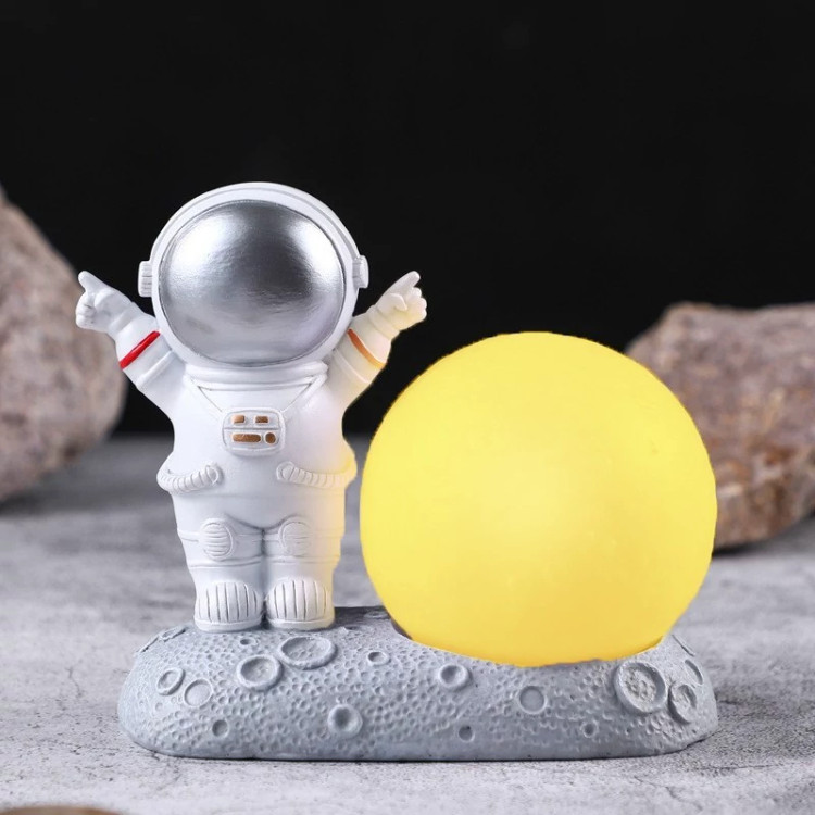 این چراغ خواب با نور دلنشین خود، فضایی آرام و دلپذیر را برای استراحت فراهم میکند. فضانوردی کوچک که در کنار ماه ایستاده و به کهکشانها خیره شده است، جلوهای بینظیر به دکوراسیون اتاق شما میبخشد. نور گرم و ملایم چراغ، محیطی آرام و دلپذیر برای خوابیدن یا استراحت فراهم میکند.