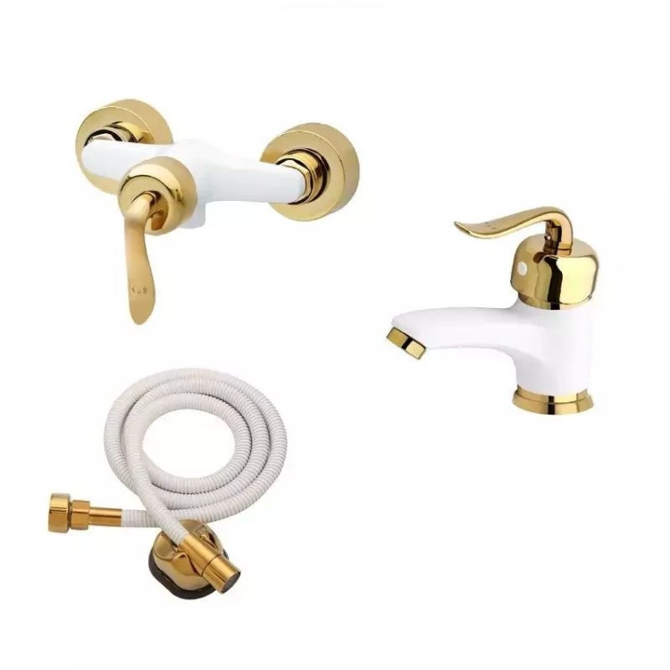 ست شیرالات قاصدک سفید طلایی همراه شلنگ توالت