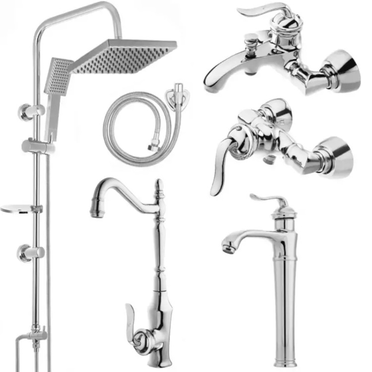 ست 6 تیکه شیرآلات بامبو کروم روشویی پایه بلند