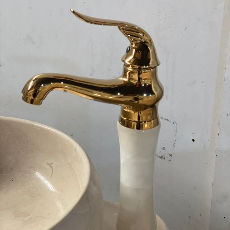 شیر روشویی پایه بلند سنگی مدل مرمر سفید