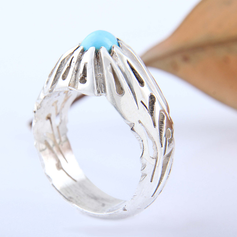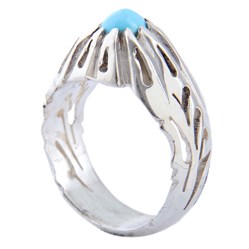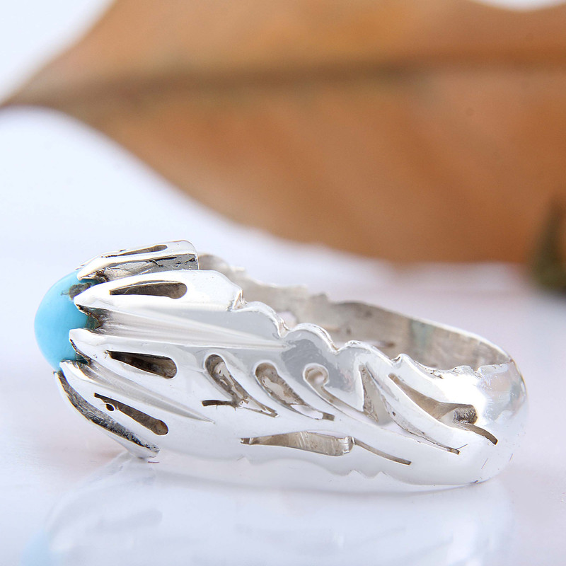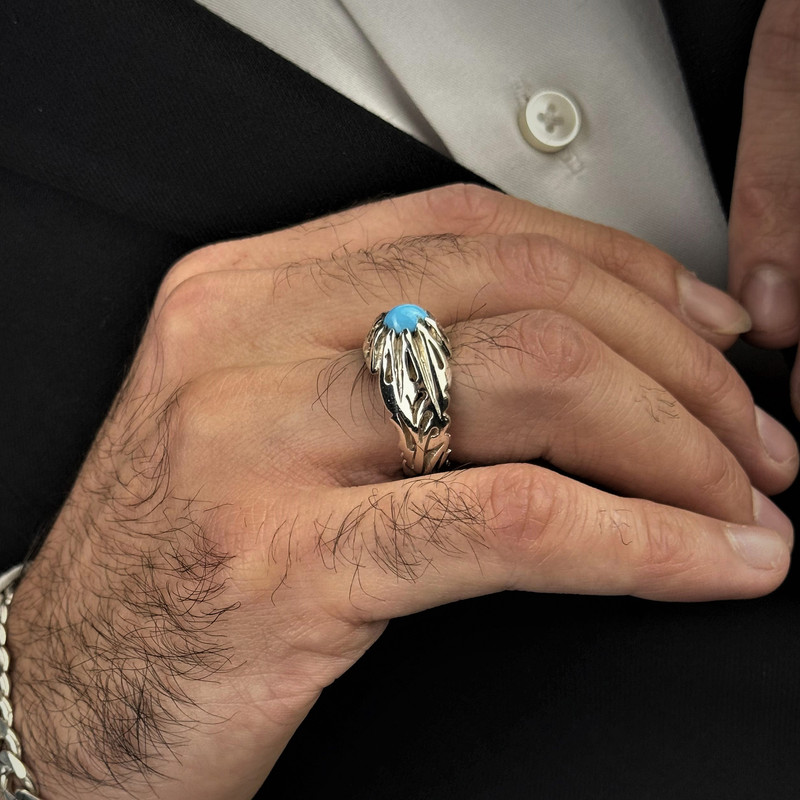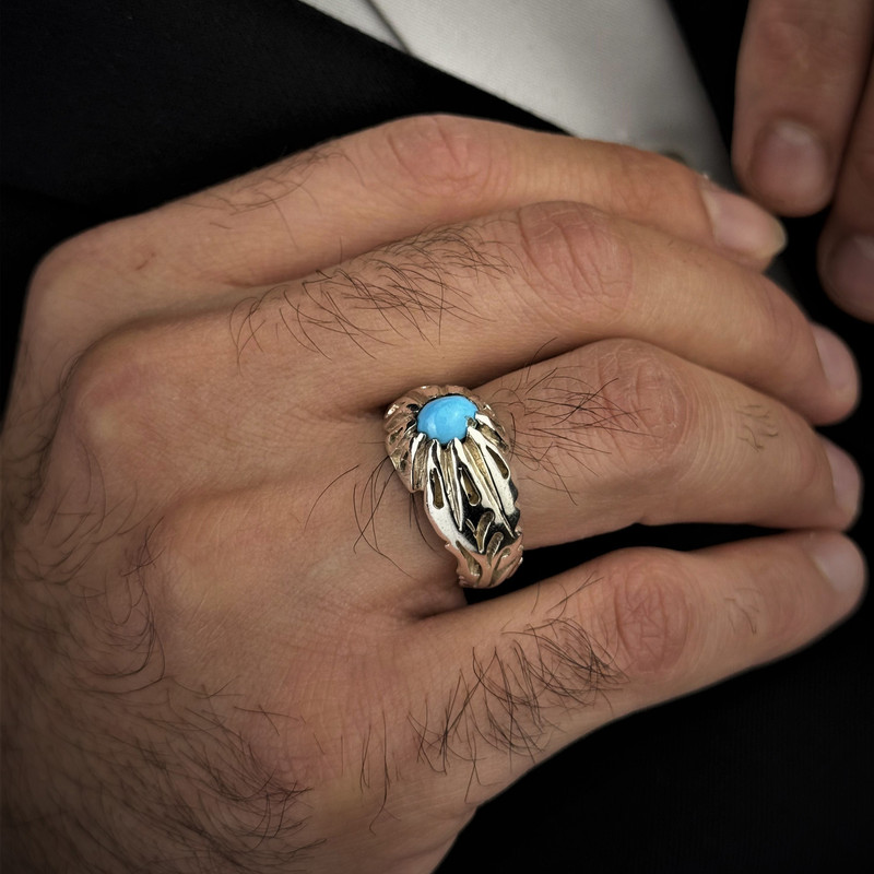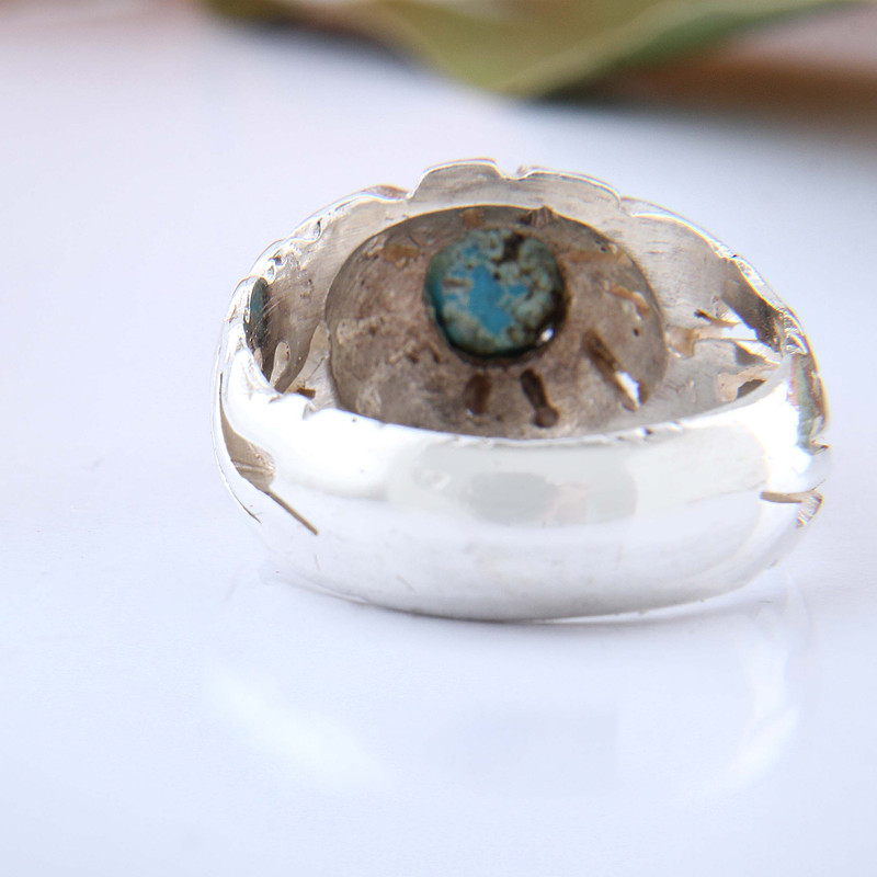 اگر دنبال خرید انگشتر نقره هستید این انگشتر نقره دست ساز سنگ فیروزه نیشابوری زیبا و خوش رنگ رکاب اره کاری نقره عیار بالا که با دقت و ظرافت بالایی ساخته شده است گزینه مناسبی برای عاشقان و کلکسیونر های انگشتر میباشد.