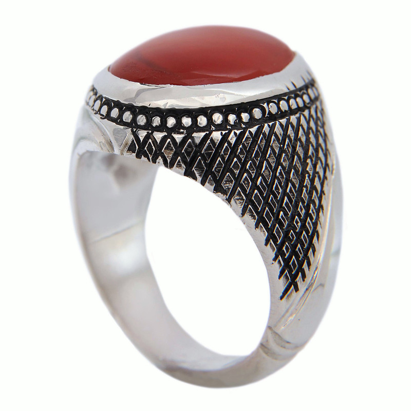 نوع انگشتر نقره مردانهطرحدار , همراه با سنگ و نگین