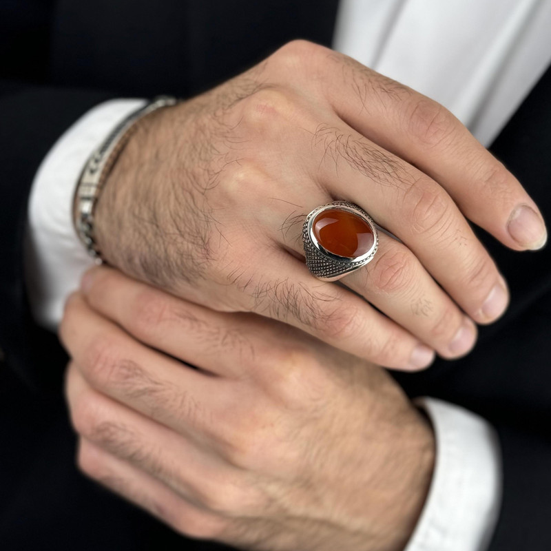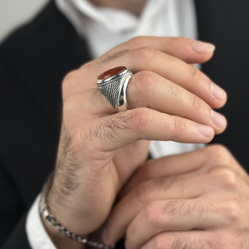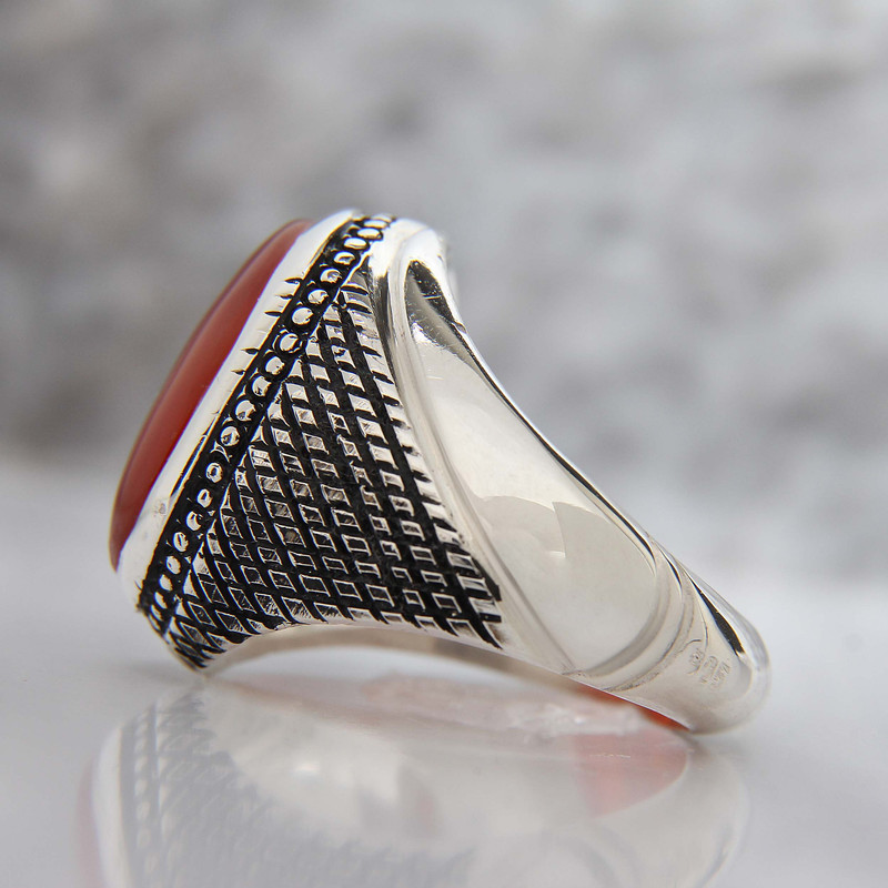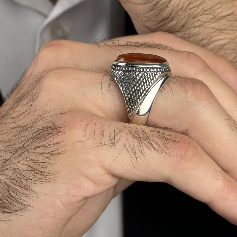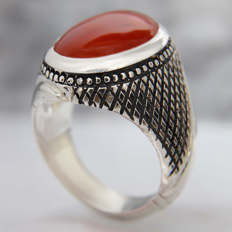 اگر دنبال خرید انگشتر نقره هستید این انگشتر نقره دست ساز با رکاب اره کاری حصیری بسیار زیبا و سنگ عقیق یمانی کم نظیر که بسیار با دقت و ظرافت بالایی ساخته شده است گزینه مناسبی برای عاشقان انگشتر و همچنین کلکسیونر های انگشتر می باشد.