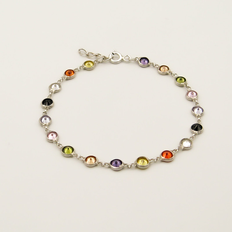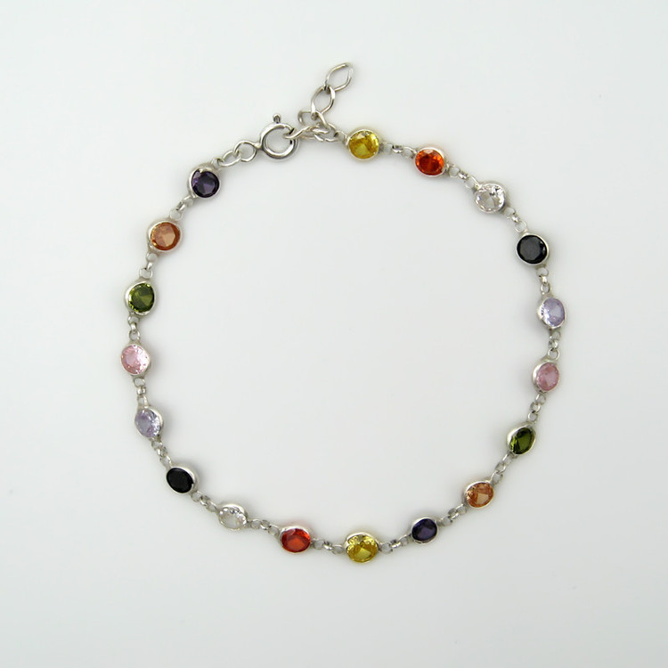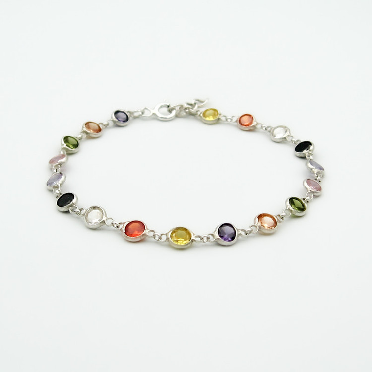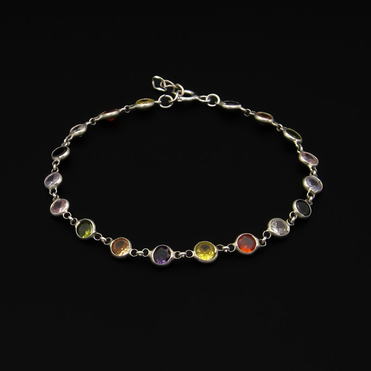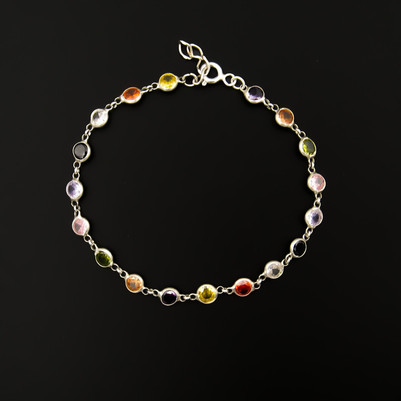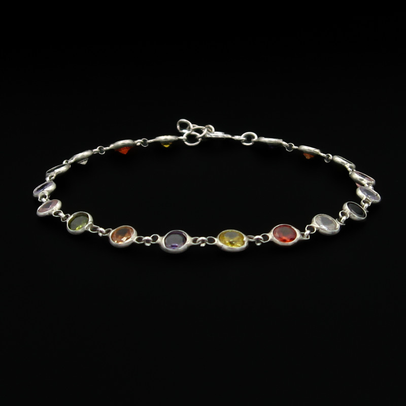 سایر توضیحات: دستبند نقره با عیار 925 و نگین های رنگی و آبکاری بسیار با کیفیت ./ طول حدودی دستبند 16 سانتی متر و یک سانت ریگلاژ /