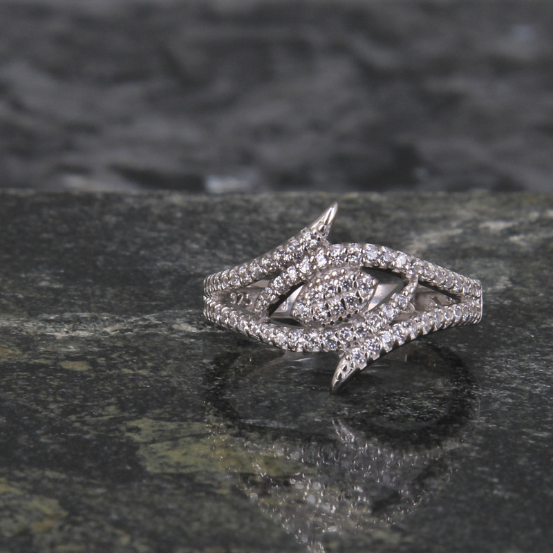 نوع انگشتر نقره زنانههمراه با سنگ و نگین , طرح دار