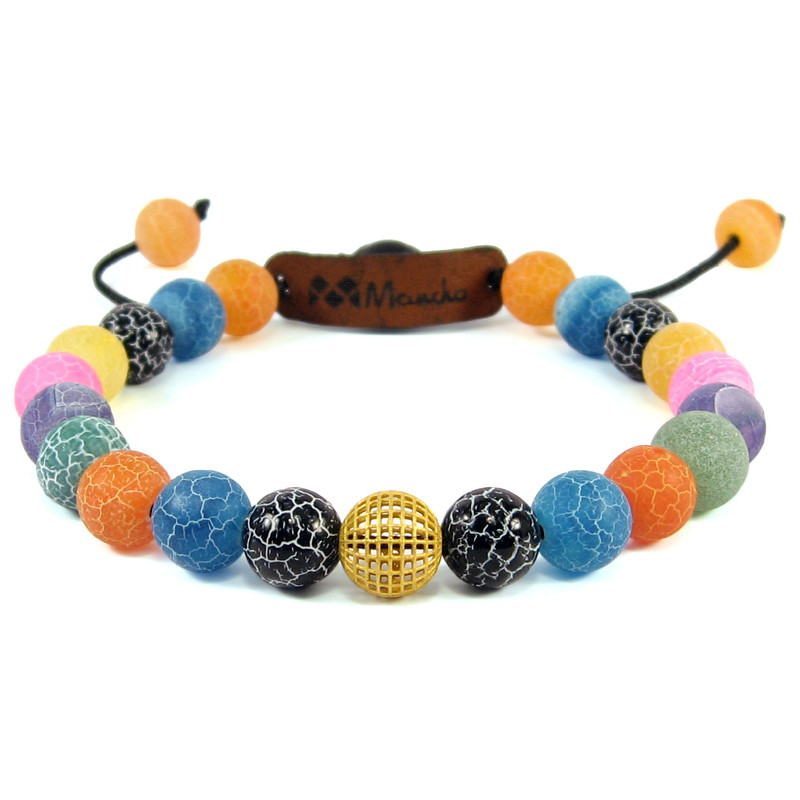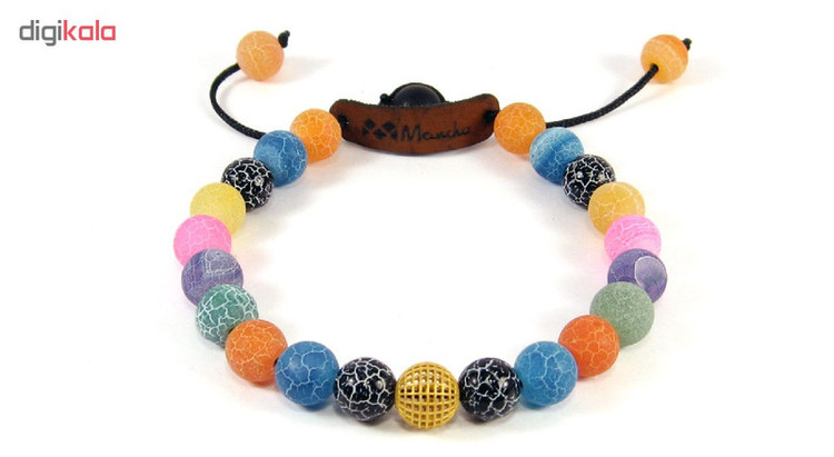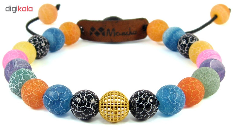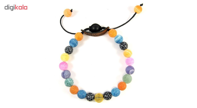 ساخته شده از: یک گوی طلا 18 عیار توری گرد به ابعاد 0.8 در 0.8 سانتی متر مهره های طبیعی عقیق آبنباتی رگه دار رنگی به همراه دو گوی نگین دار طرح سواروسکی دارای قفل گره ای کشویی با قابلیت تغییر سایز از حدود 17 الی 25 سانتی متر