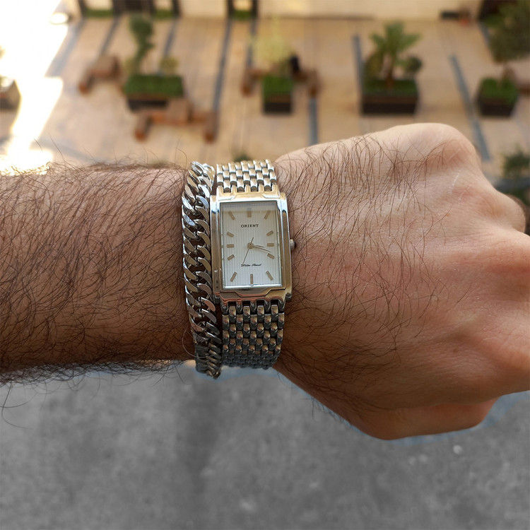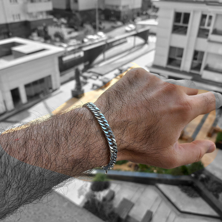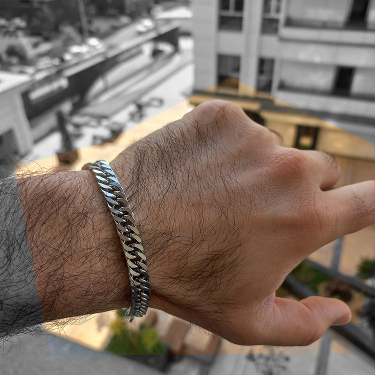 دستبند استیل به طول حدودی 20 سانتی متر و پهنای حدودی 0.9 سانتی متر بسیار مقاوم و محکم کاملا قابل شستشو