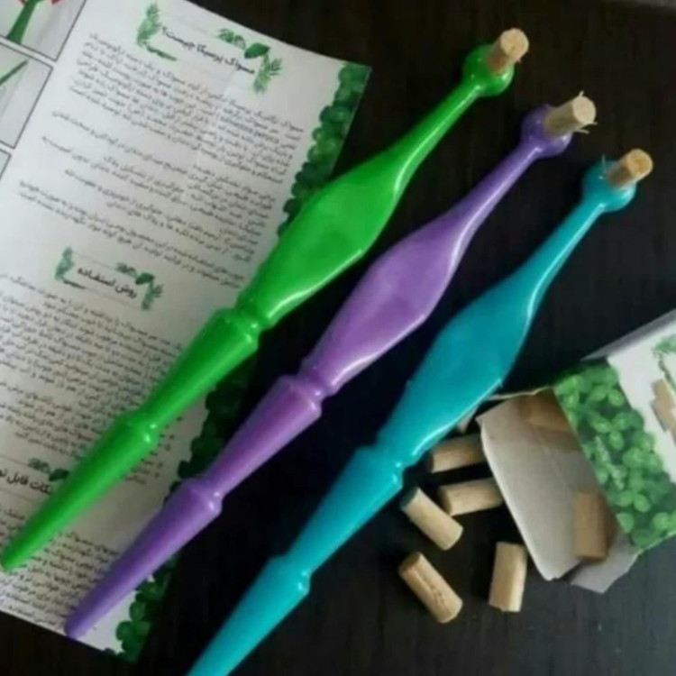 🔅 #پرسیکا #گیاهی_کهن_در_قالبی_مدرن 🔅 🍃(ترکیبی از گیاه مسواک و یک دسته پلاستیکی)🍃 ✅ چوب ایرانی ارگانیک (خود رو و بومی و بسیار نرم) ✅ استفاده آسان. ✅ پوشش دندان های انتهایی. 🔻خواص چوب اراک: حاوی: 🔹 فلوراید طبیعی(شکل گیری صحیح مینای دندان در کودکان و سخت شدن مینای دندان در بزرگسالان) 🔸سیلیکا ( ساینده طبیعی, براق و سفیدکننده دندان بدون آسیب به مینای دندان) 🔹کلرور ( از بین برنده لکه ها و پلاک های دندان) 🔸 تانن (ضدالتهاب لثه ,جلوگیری از تشکیل پلاک) 🔹 ویتامینc(ترمیم بافت دهانی,جلوگیری از خونریزی و عفونت لثه) درچند رنگ مختلف