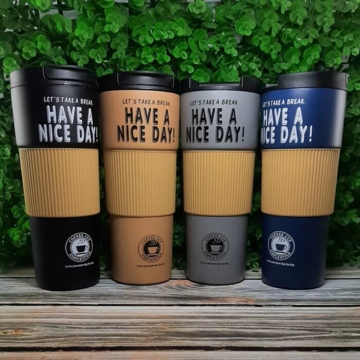 تراول ماگ خودرو HAVE A NICE DAY کمر سیلیکونی تراول ماگ دور سیلیکونی تراول ماگ کافی600میلی HAVE A NICE DAY