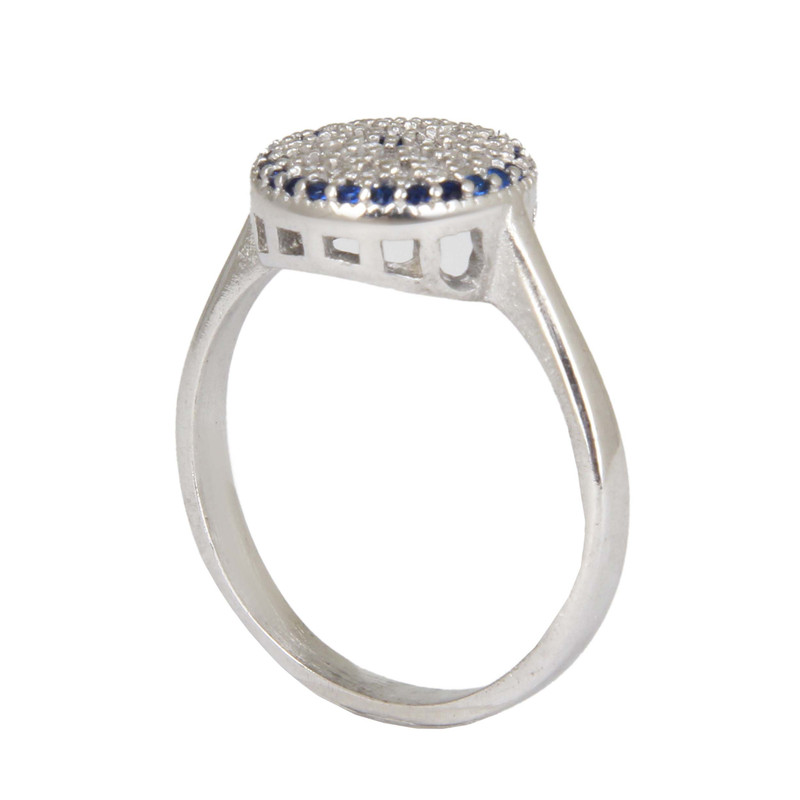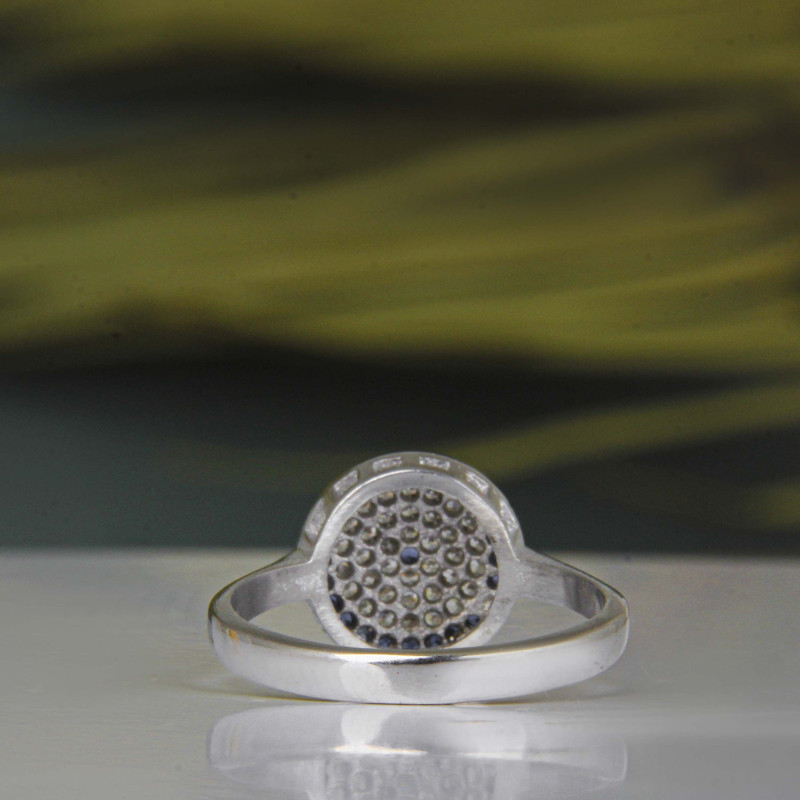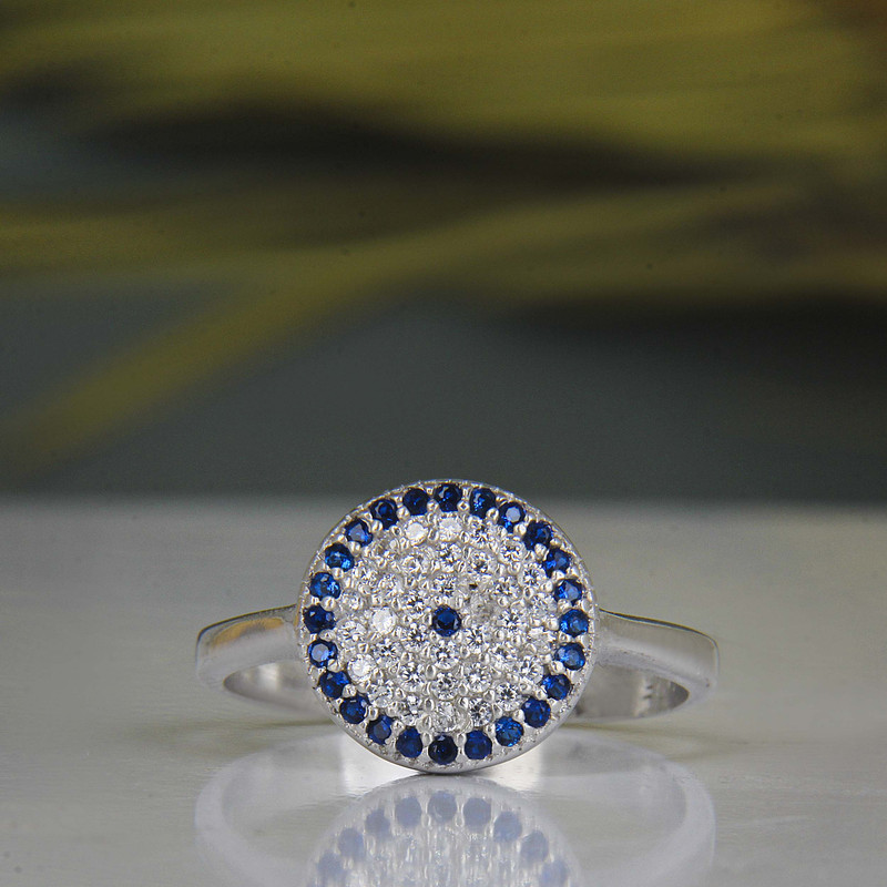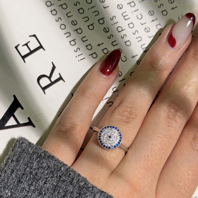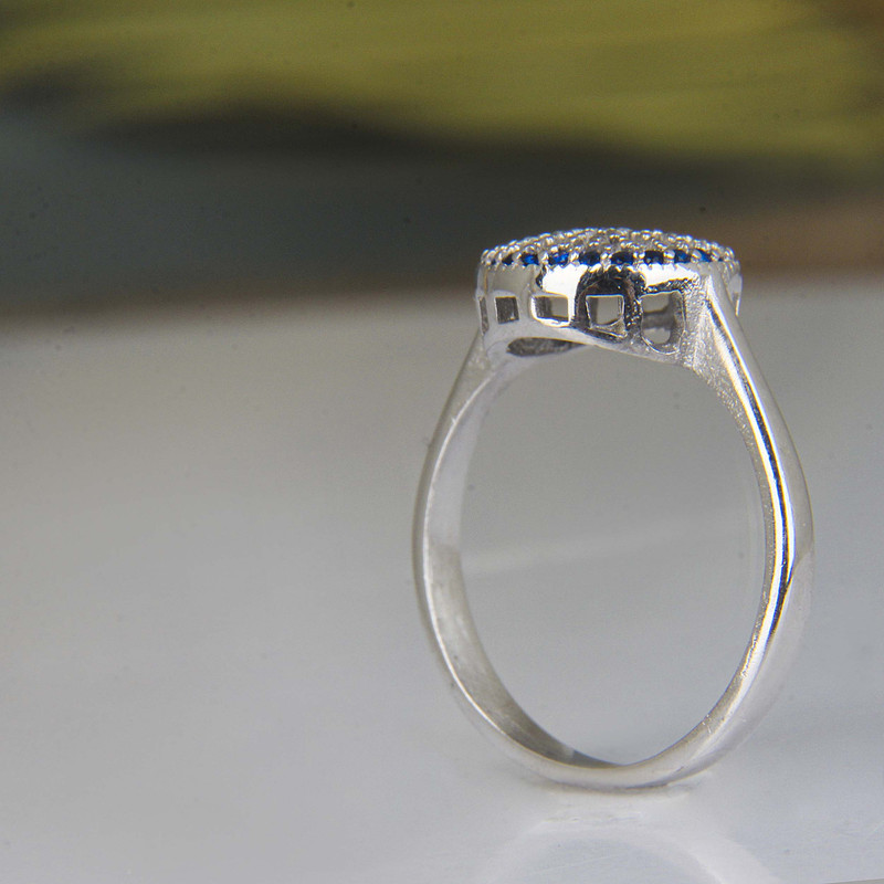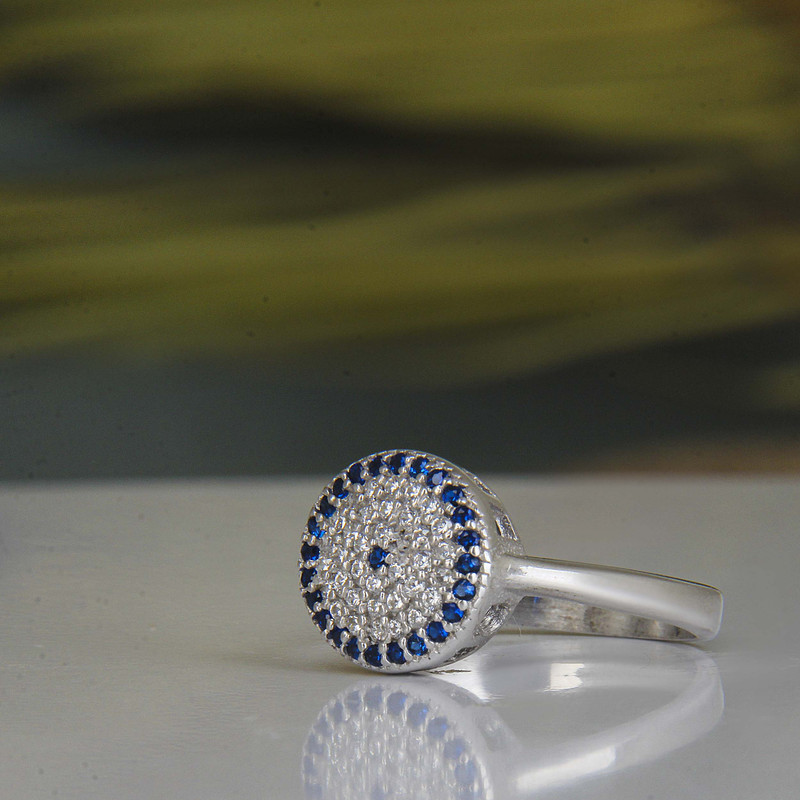 این انگشتر نقره زنانه با مخراج کاری برلیان طرح چشم زخم عیار 925 به وزن 2.9 گرم دارای روکش طلا سفید (رادیوم) می باشد. کیفیت ساخت کار بالا بوده و در روکش آن از مواد حساسیت زا مانند نیکل استفاده نشده است روکش طلا سفید و جلوه زیبا و درخشان کار باعث شده از نظر ظاهری تفاوتی با طلا نداشته باشد. همچنین مخراج کاری نگین ها طوری انجام شده که در برابر ضربه مقاوم باشند.